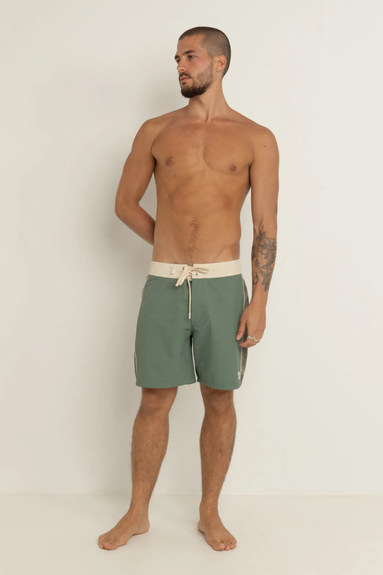 19-inch trunks with side panel and piping details, offering a stylish and functional choice for beach and surf.