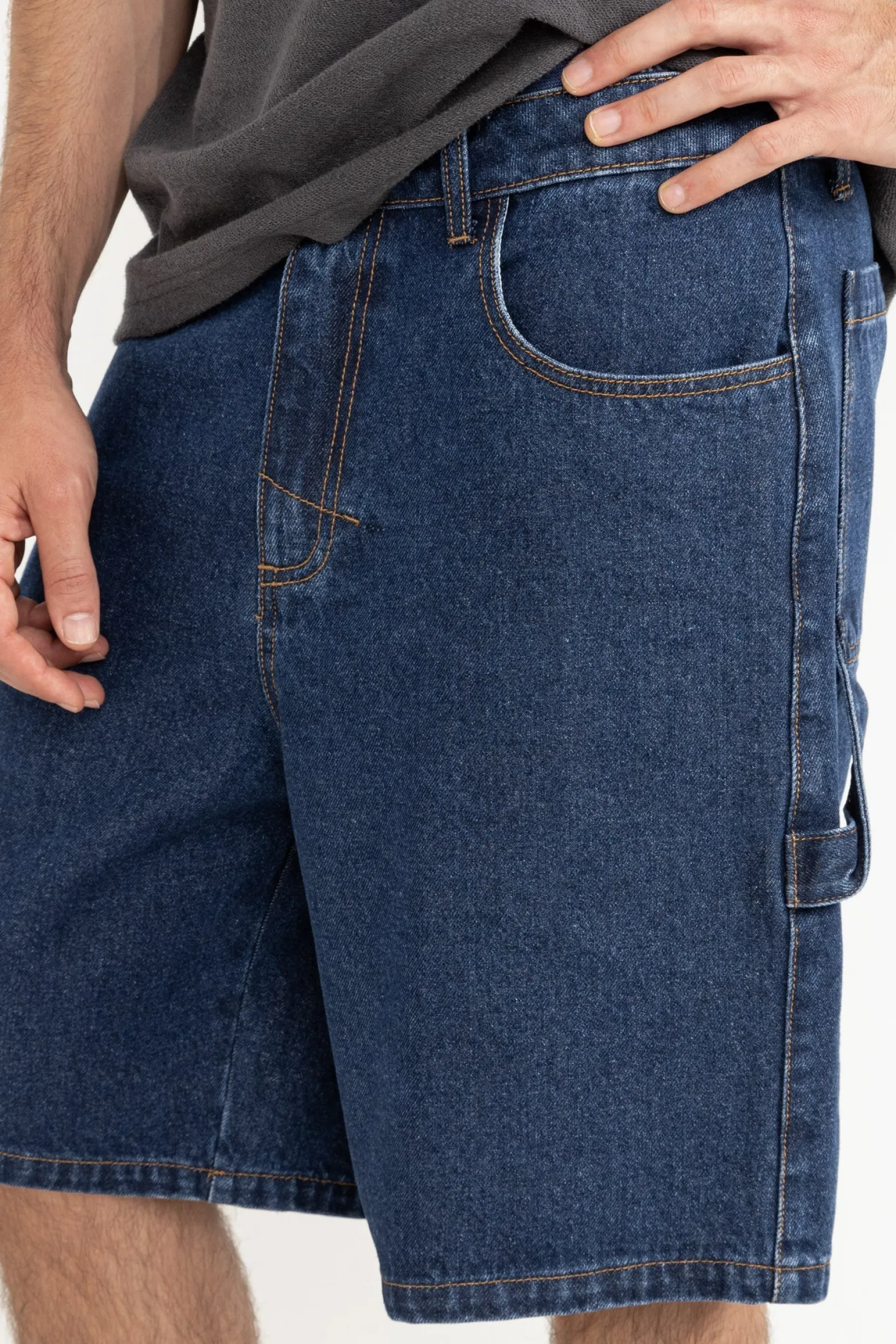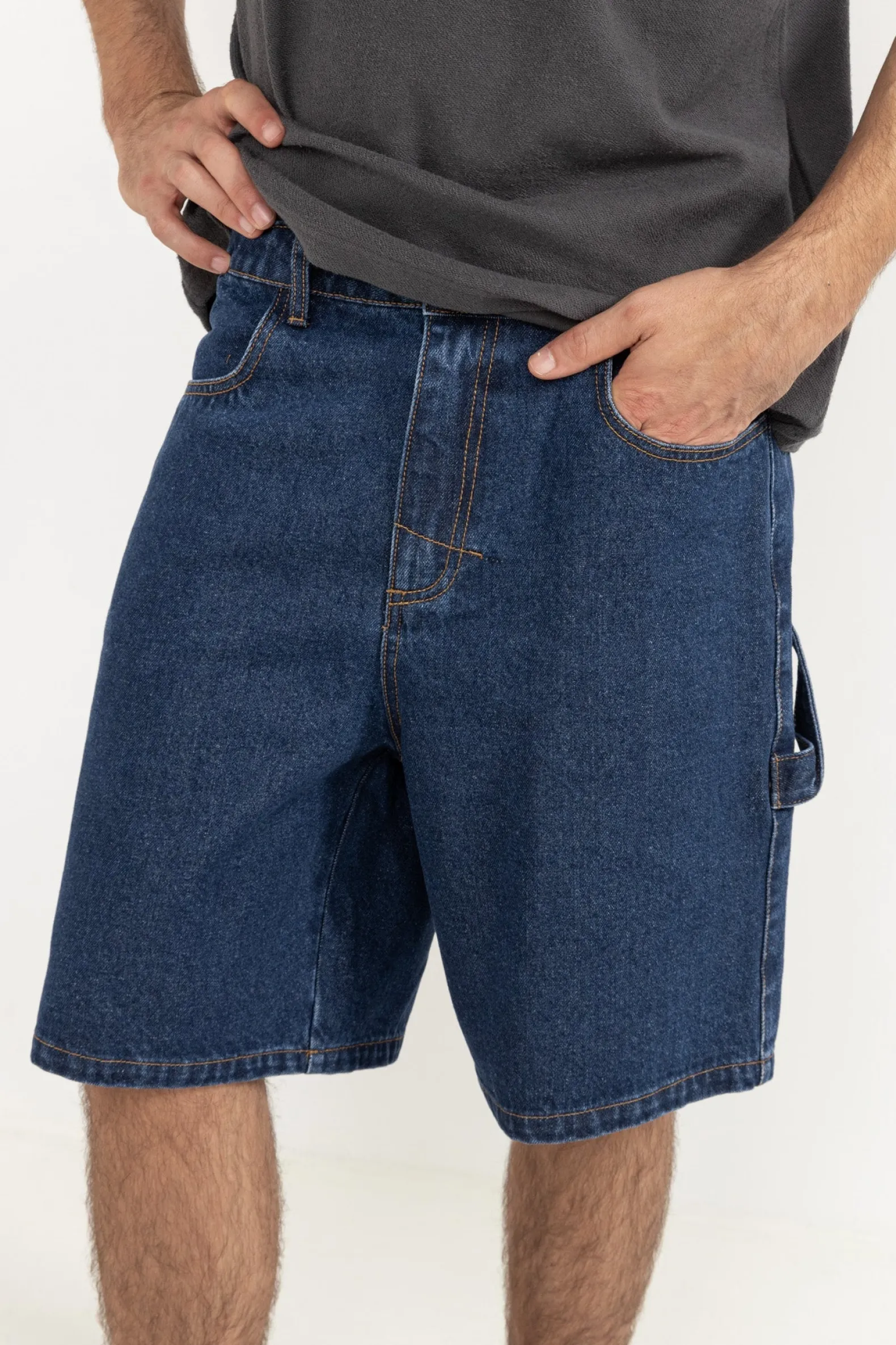 The Breakers Denim Short in Navy showcases a mix-and-match stripe design in contrasting hues of white and brown. With a relaxed fit, these shorts blend classic and contemporary effortlessly.