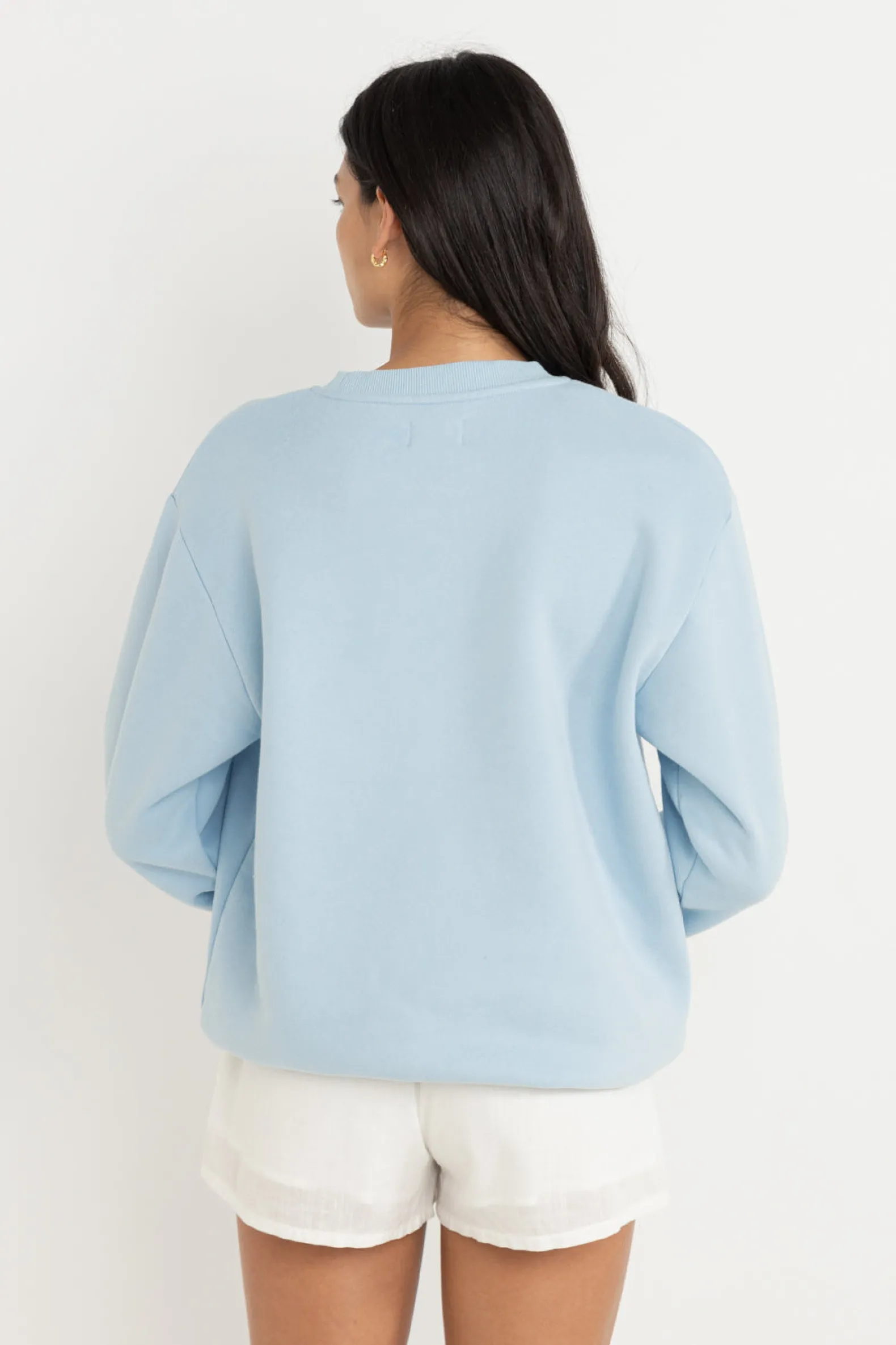 Laidback and carefree, the Classic Brand Fleece in Blue is made of a super soft and cosy brushed fleece in an oversized relaxed fit, perfect for catching the sunset amongst the fresh sea breeze.