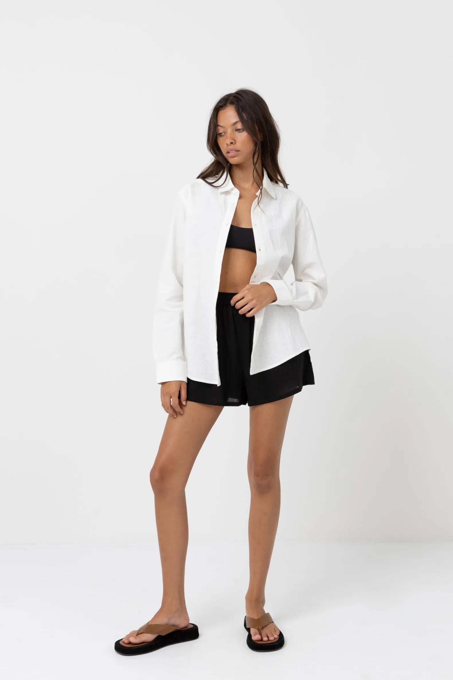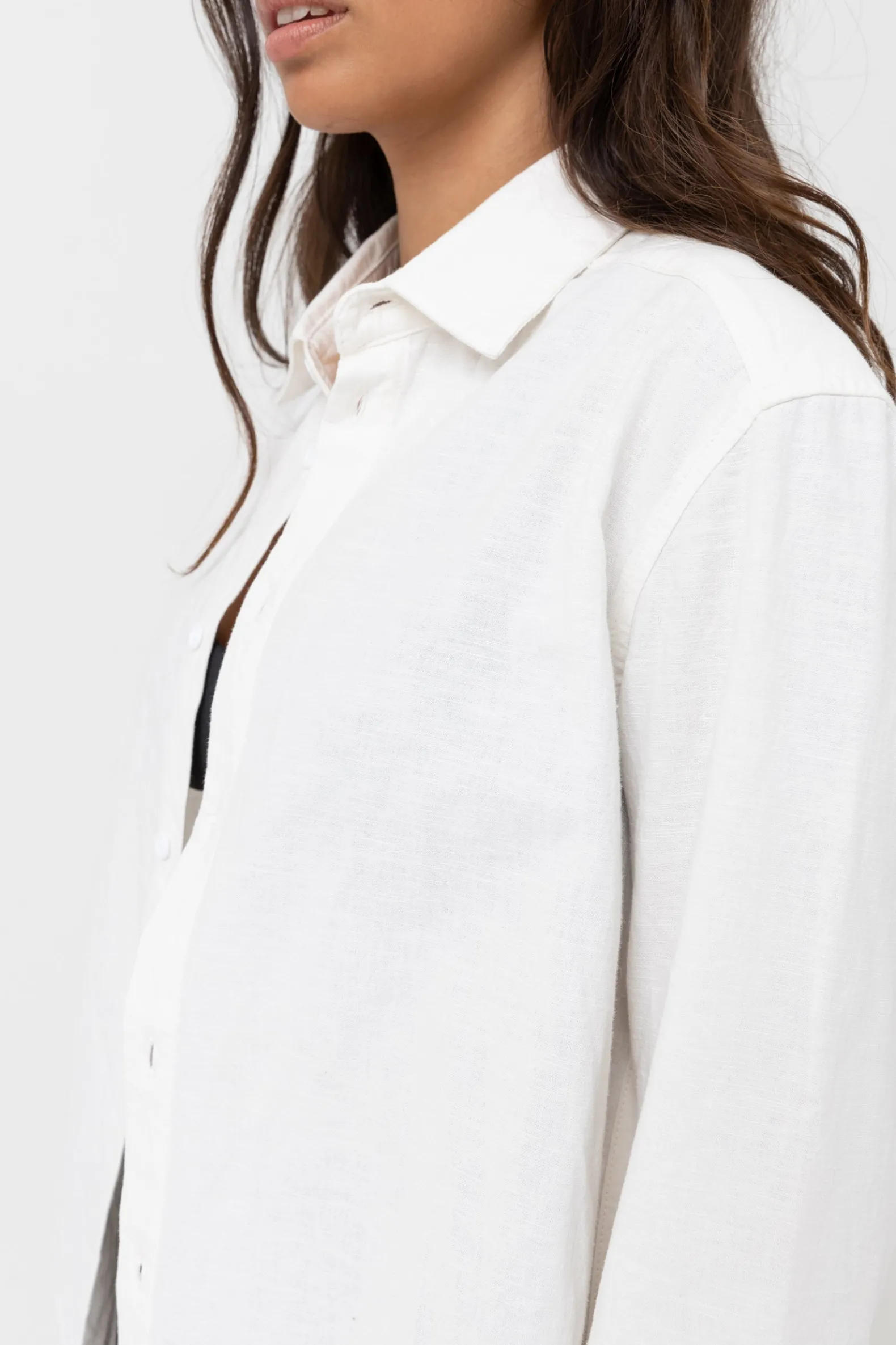 An essential Rhythm style in fresh linen for all of your summer days. Master effortless style in the Classic Long Sleeve Shirt with a collard neckline, button front close and structured cuffs, for adventures under the sun.