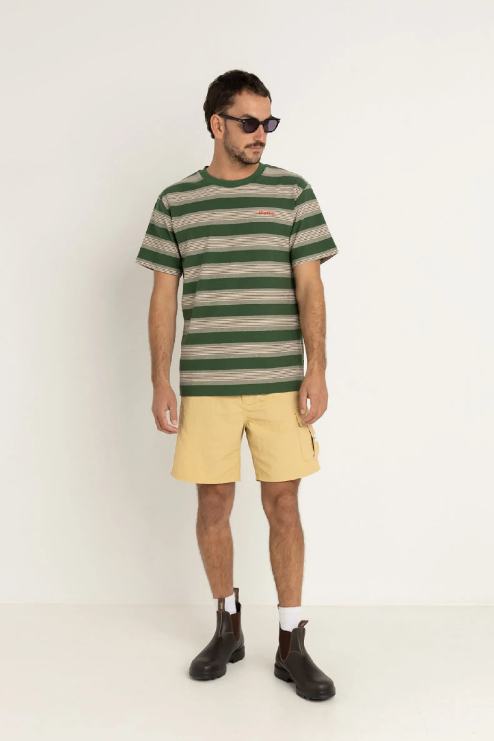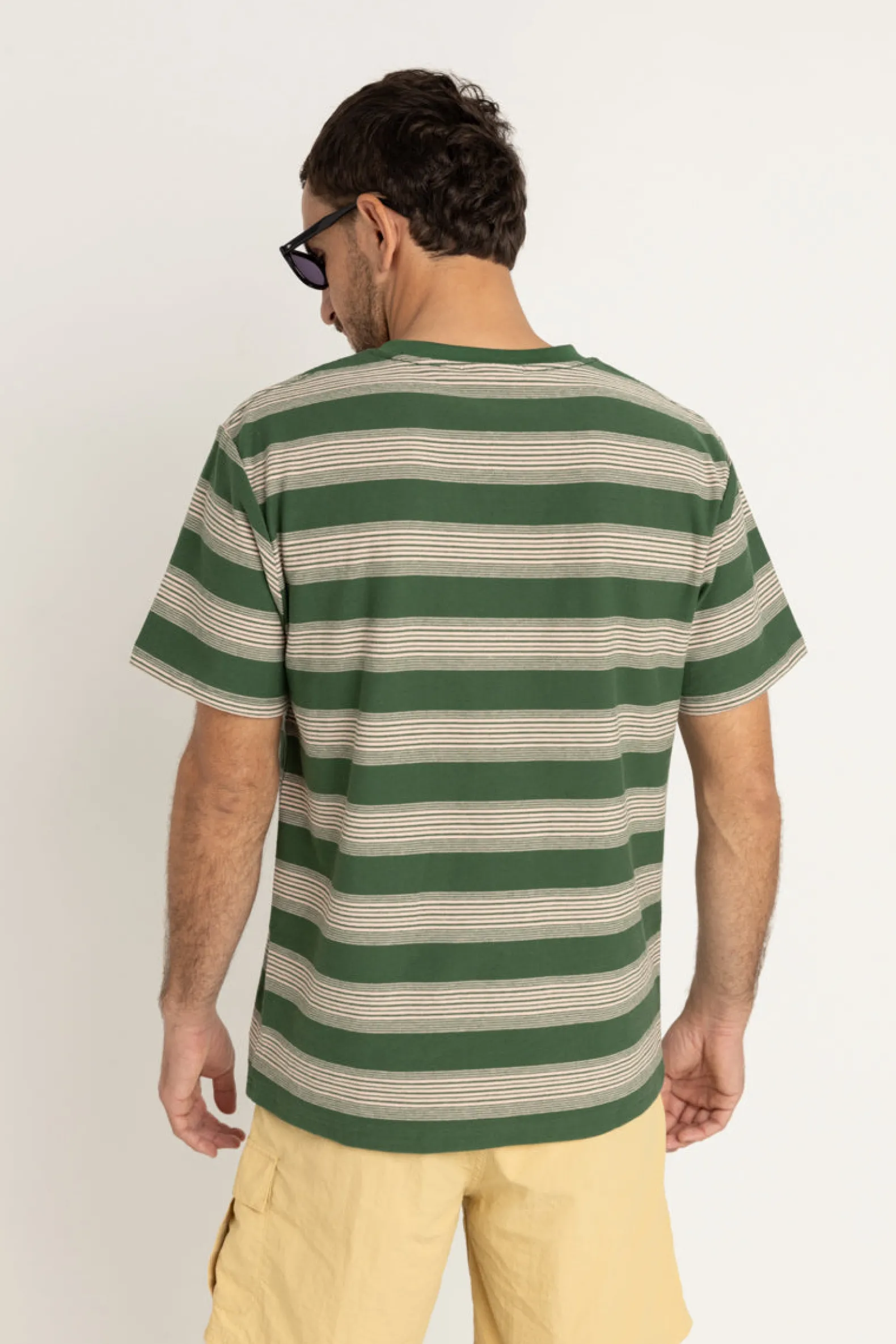 Elevate your casual wardrobe with the Echo Stripe SS T-Shirt. This relaxed fit tee features a warped stripe design and a small embroidered emblem, offering a laid-back yet refined look. Perfect for coastal days.
