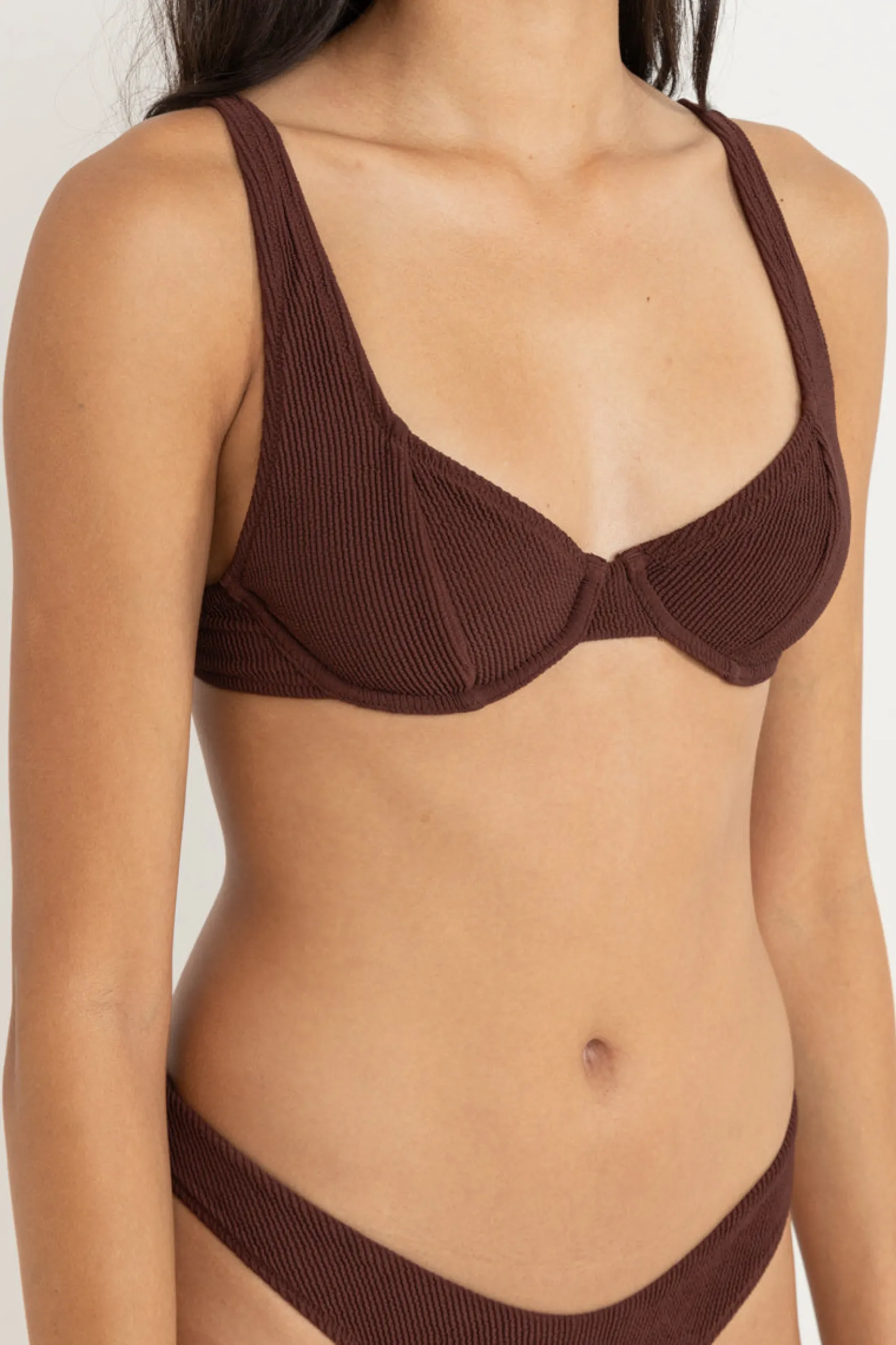 Supportive and stylish, this café underwire top is perfect for A-D cup sizes. Adjustable straps, tie-back closure, and gathered detailing offer a flattering fit.