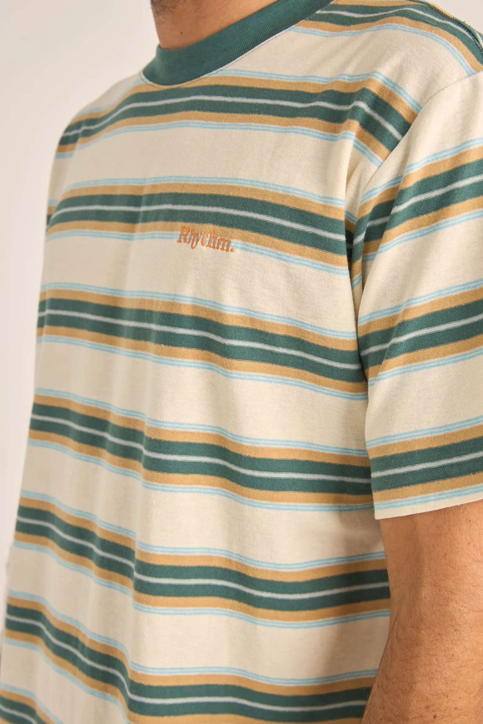 Adorned with an embroidered logo that whispers stories of seaside adventures, the Vintage Green Everyday Stripe SS T-Shirt is a melody of comfort woven into yarn dye stripes. Made from 100% cotton, every thread speaks of softness, brought out by the wash that gives it a hand feel as gentle as the morning tide.