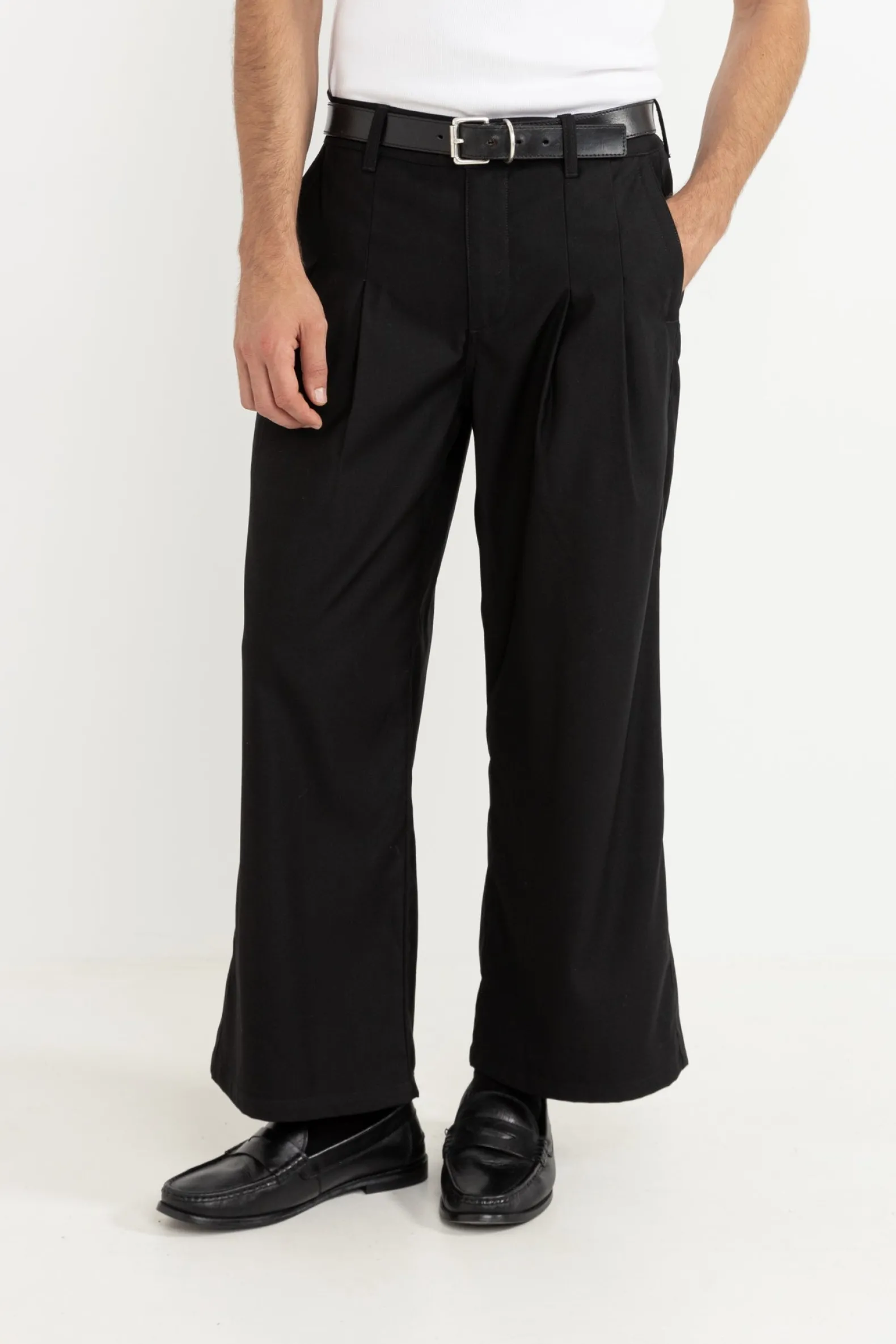 Elevate your look with the Jesse Pleated Pant in Black. Triple 10cm front pleats and a sleek design make this trouser a sophisticated choice for casual or formal occasions.