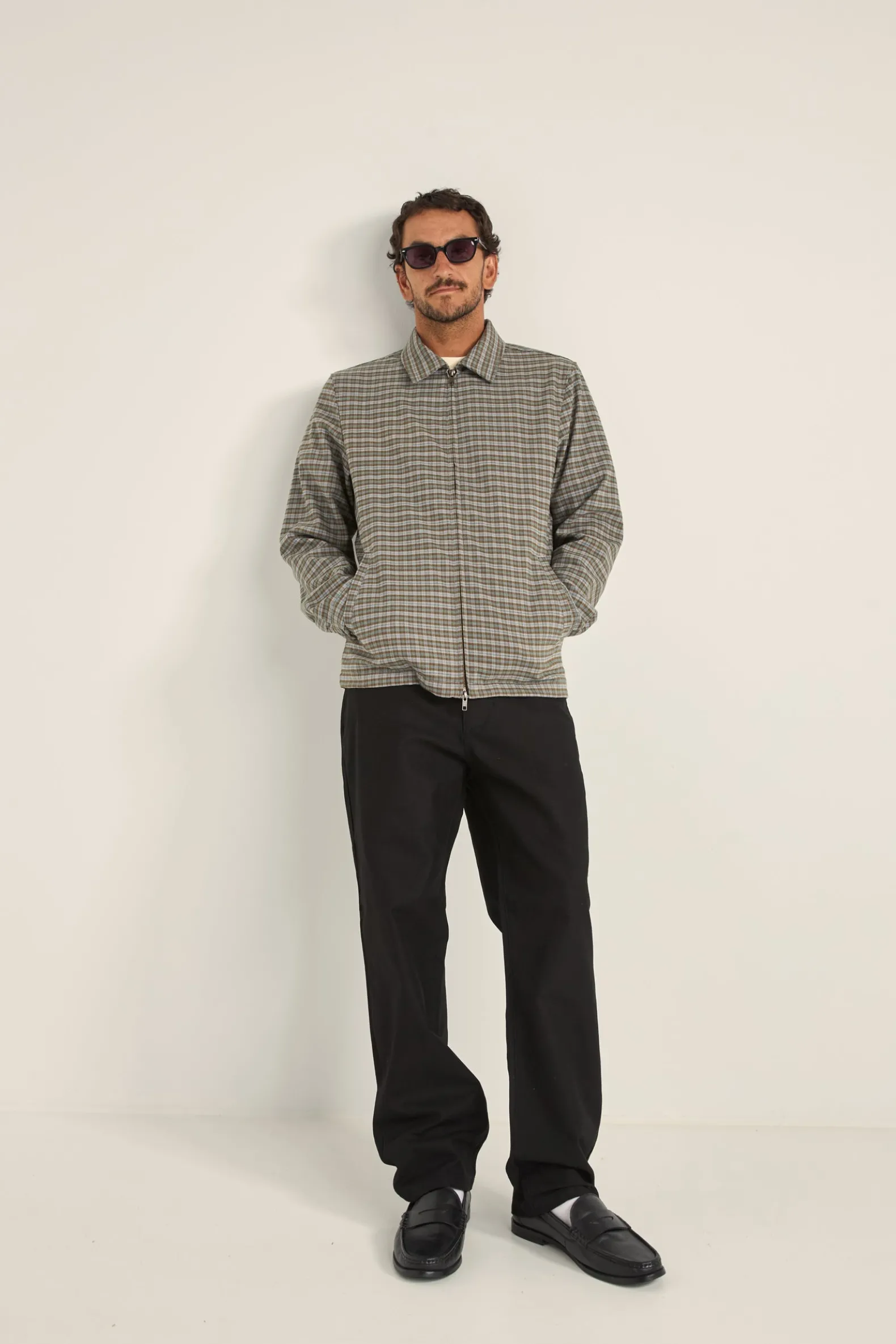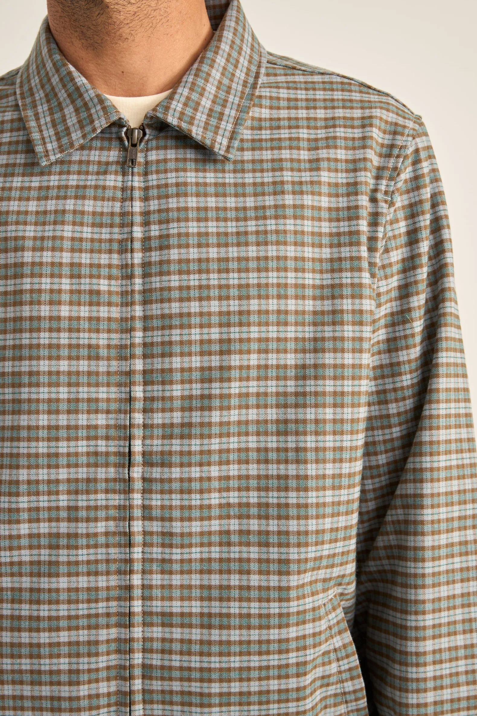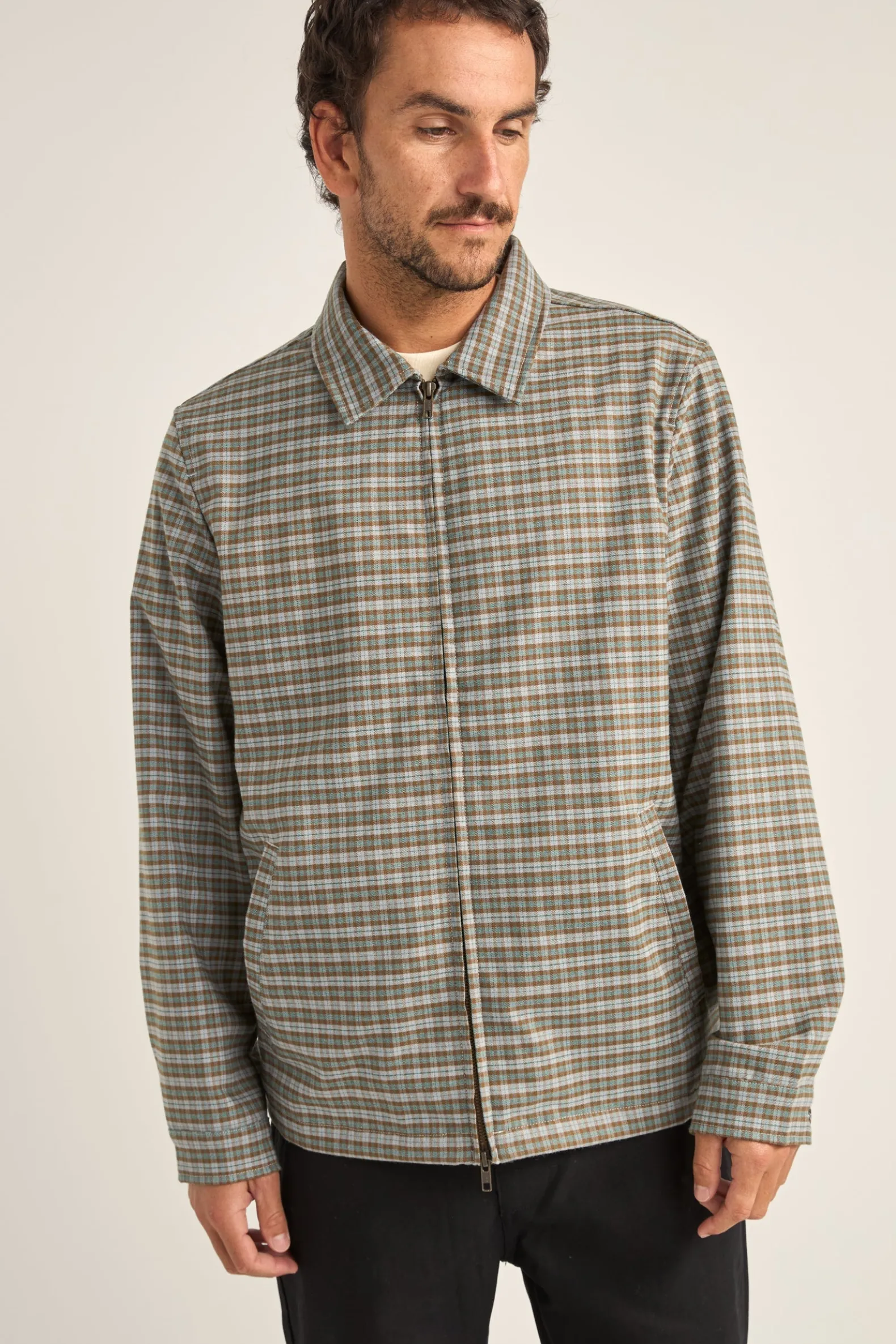 Introducing the Jordy Check Jacket in Blue Check, a lightweight essential for coastal living. Featuring an oversized fit, check print detail, metal zipper closure, side slant pockets, and signature Rhythm trims. Perfect for adding relaxed style to your wardrobe.