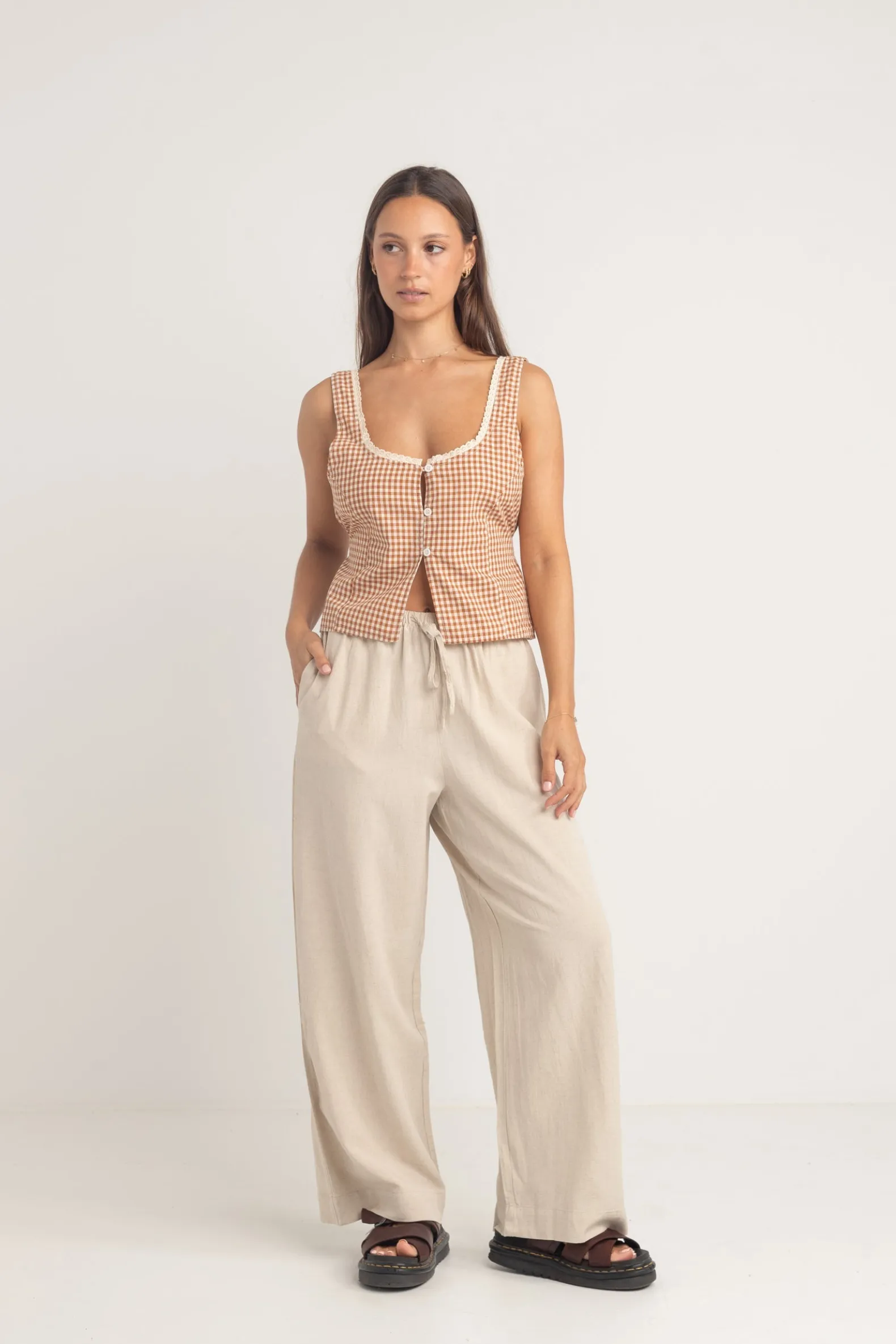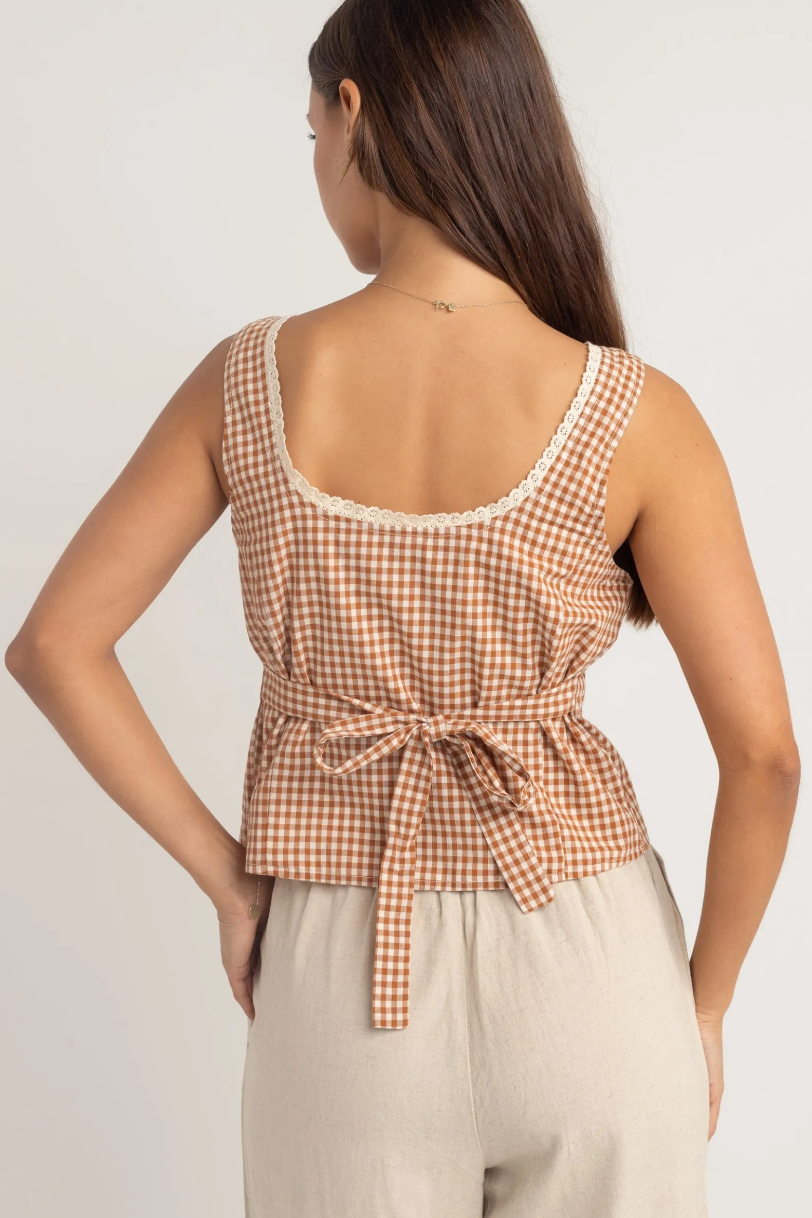 The Lola Check Top has been designed for those moments made to capture with the slim fit, crochet trim and yarn dye check elevating your style when your holiday needs it most. Featuring wide straps and a square neck, it is completed with an adjustable tie-back for a customising fit.