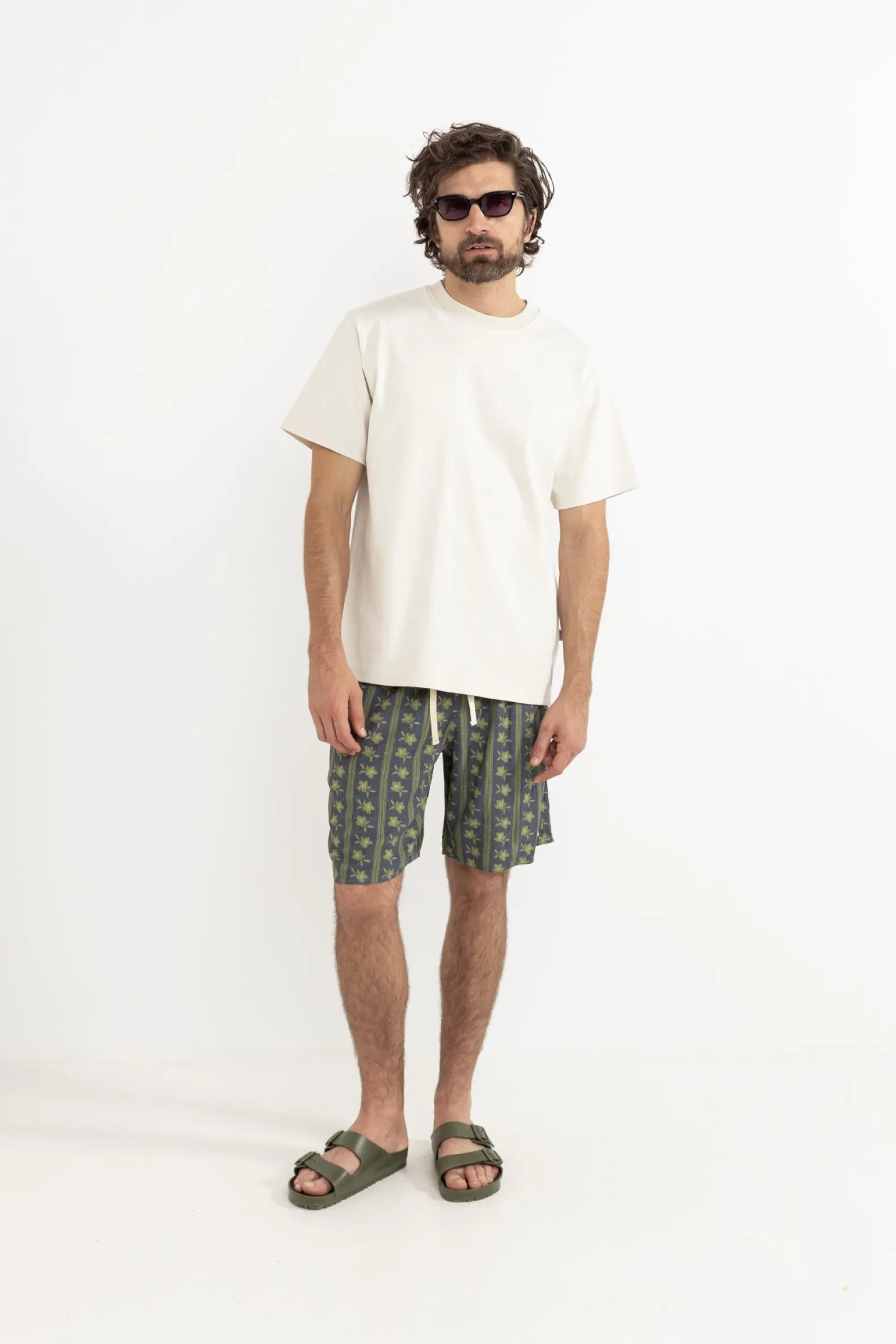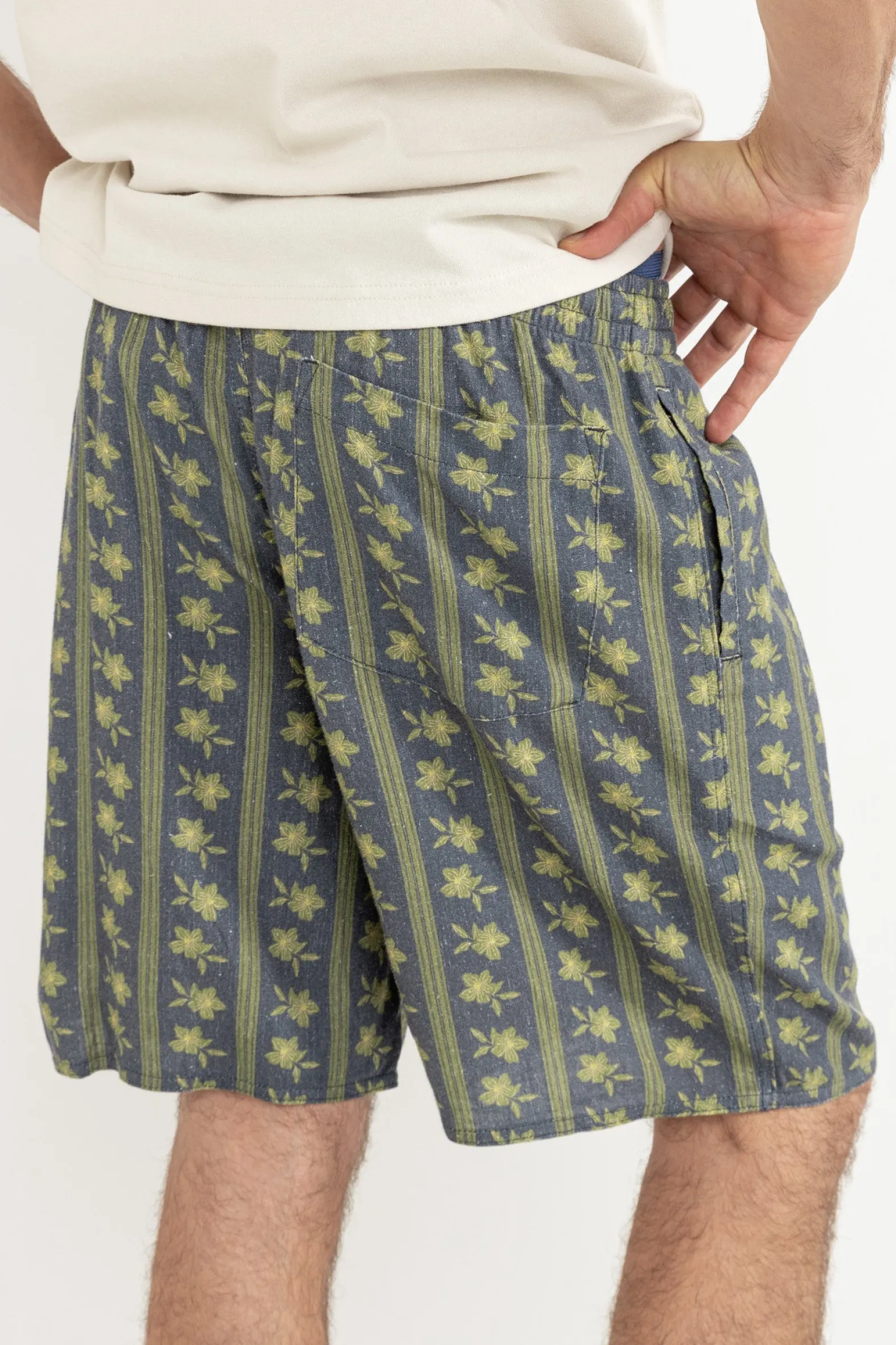 Make a statement in the Overlap Jam in Stone Blue. Featuring an all-over print, DTM drawstring, and signature branding, these jams are crafted for effortless style by the shore.