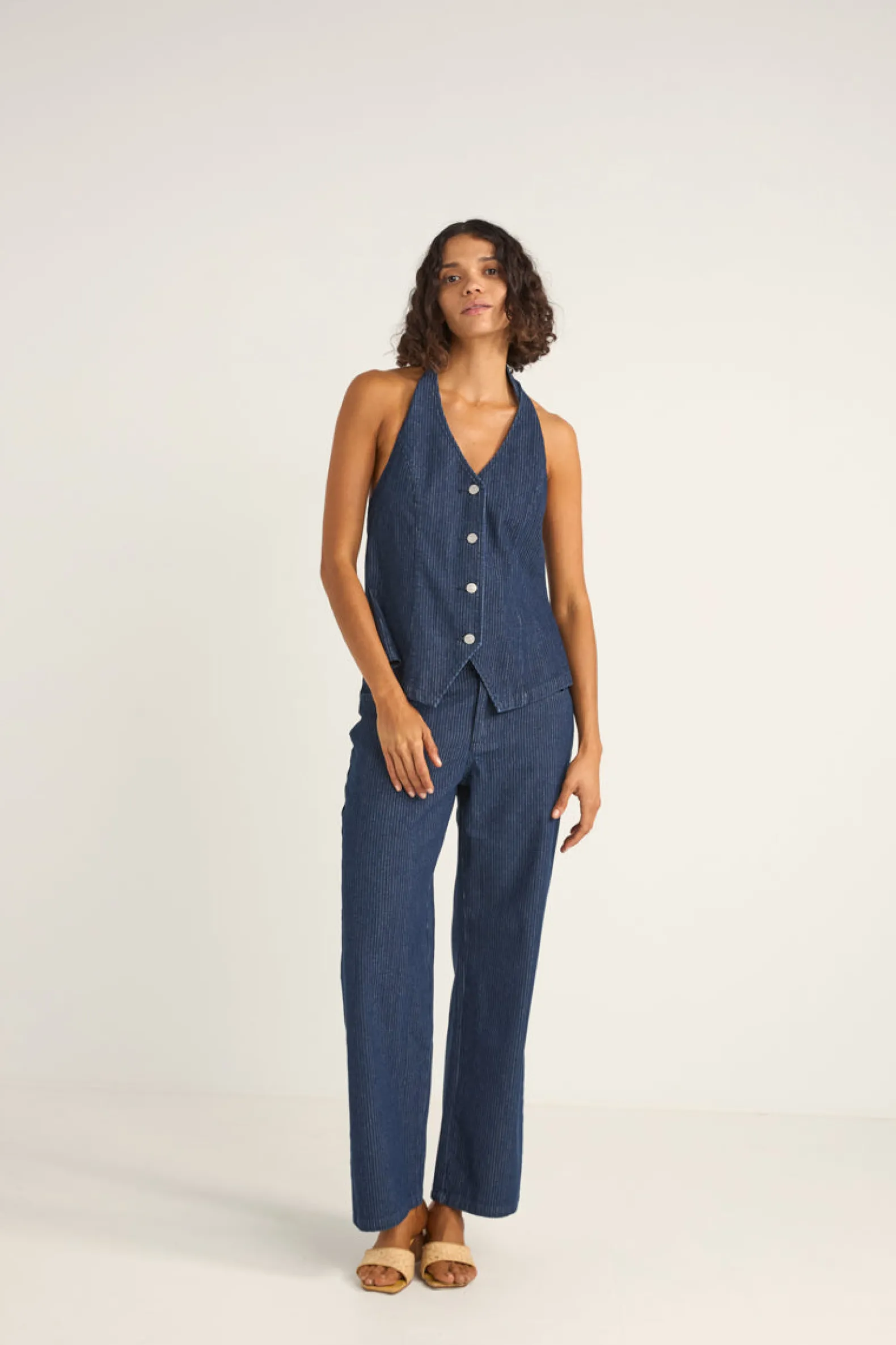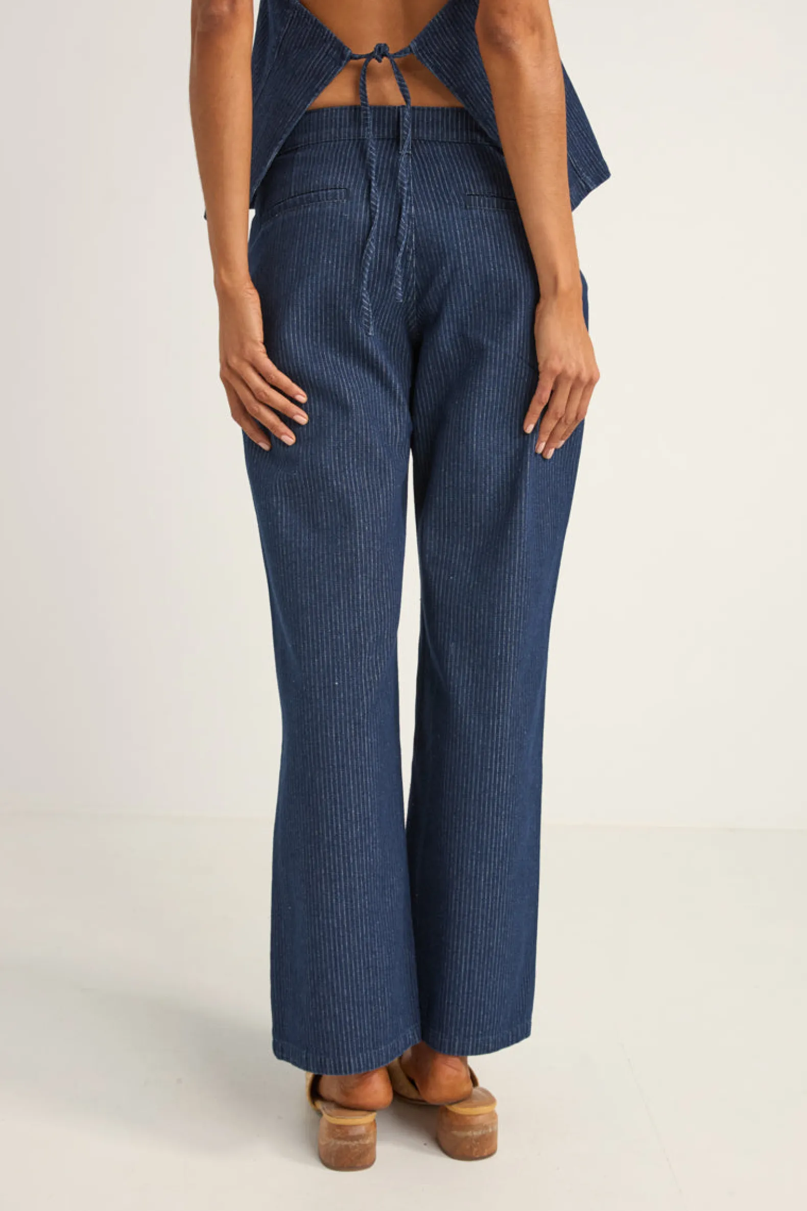 The Pinstripe Mid-Rise Pant offers a classic fit with a straight leg and subtle pinstripes. Ideal for both relaxed and polished looks, it’s a versatile wardrobe staple.