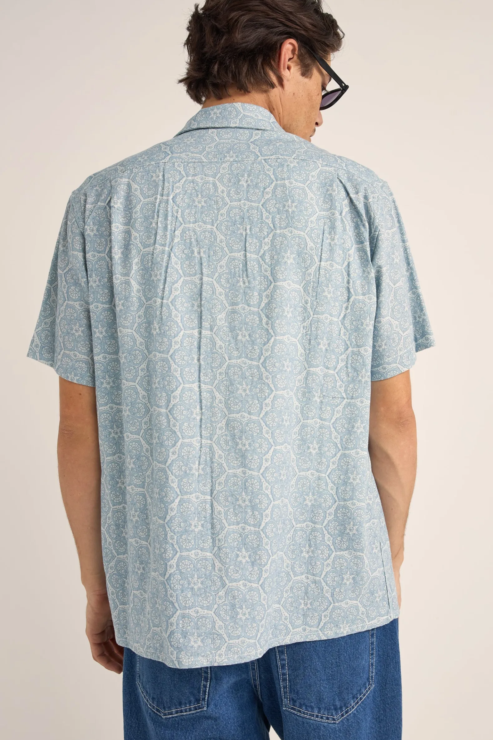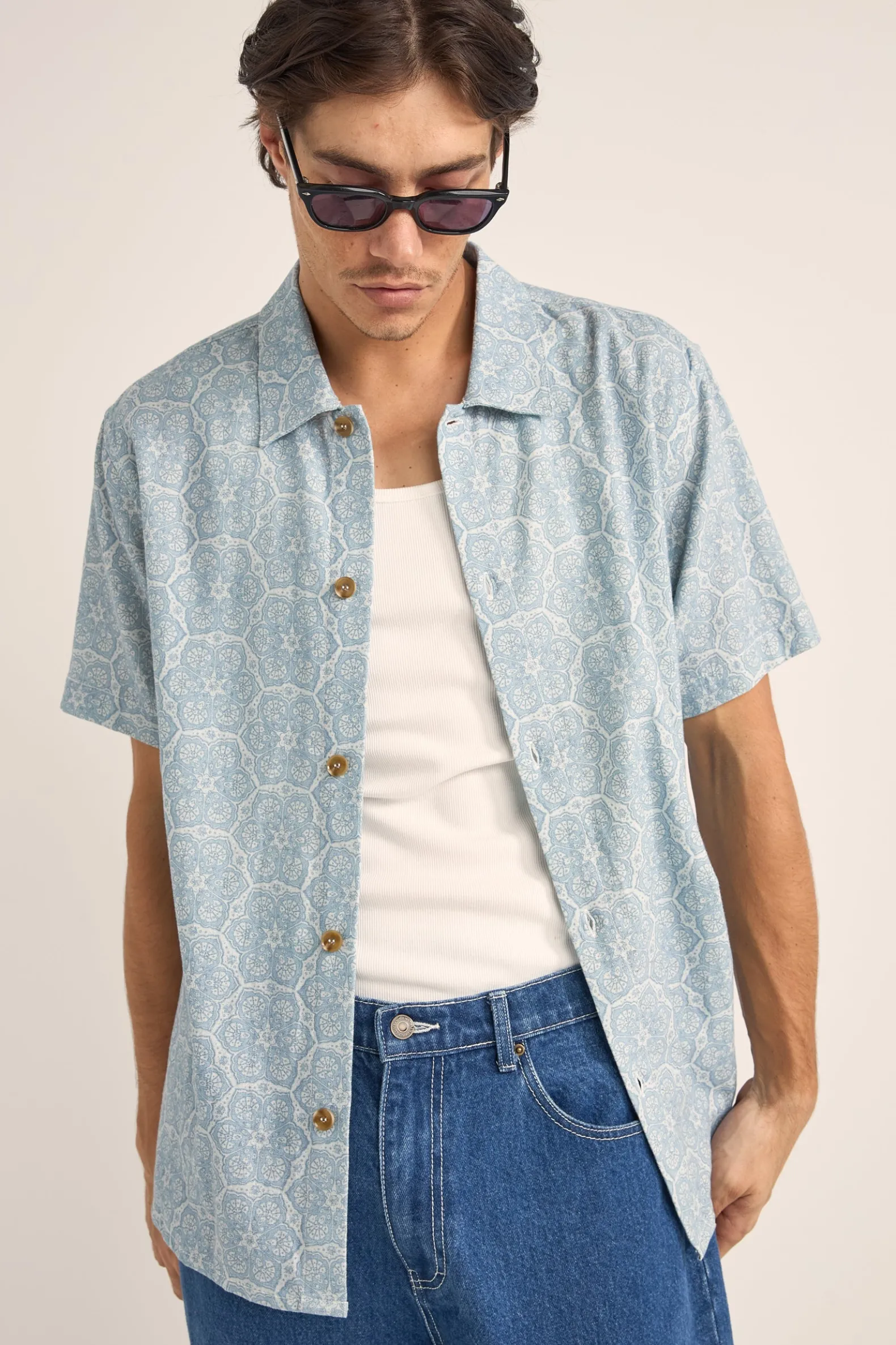 The Vera SS Shirt in Sky, crafted from a soft 55% linen and 45% rayon blend, combines airy comfort with understated sophistication. With a custom yardage print, 5 plastic button CF closure, a one-piece collar, and washed for a vintage hand feel, it’s the ideal top for slow days in the sun.