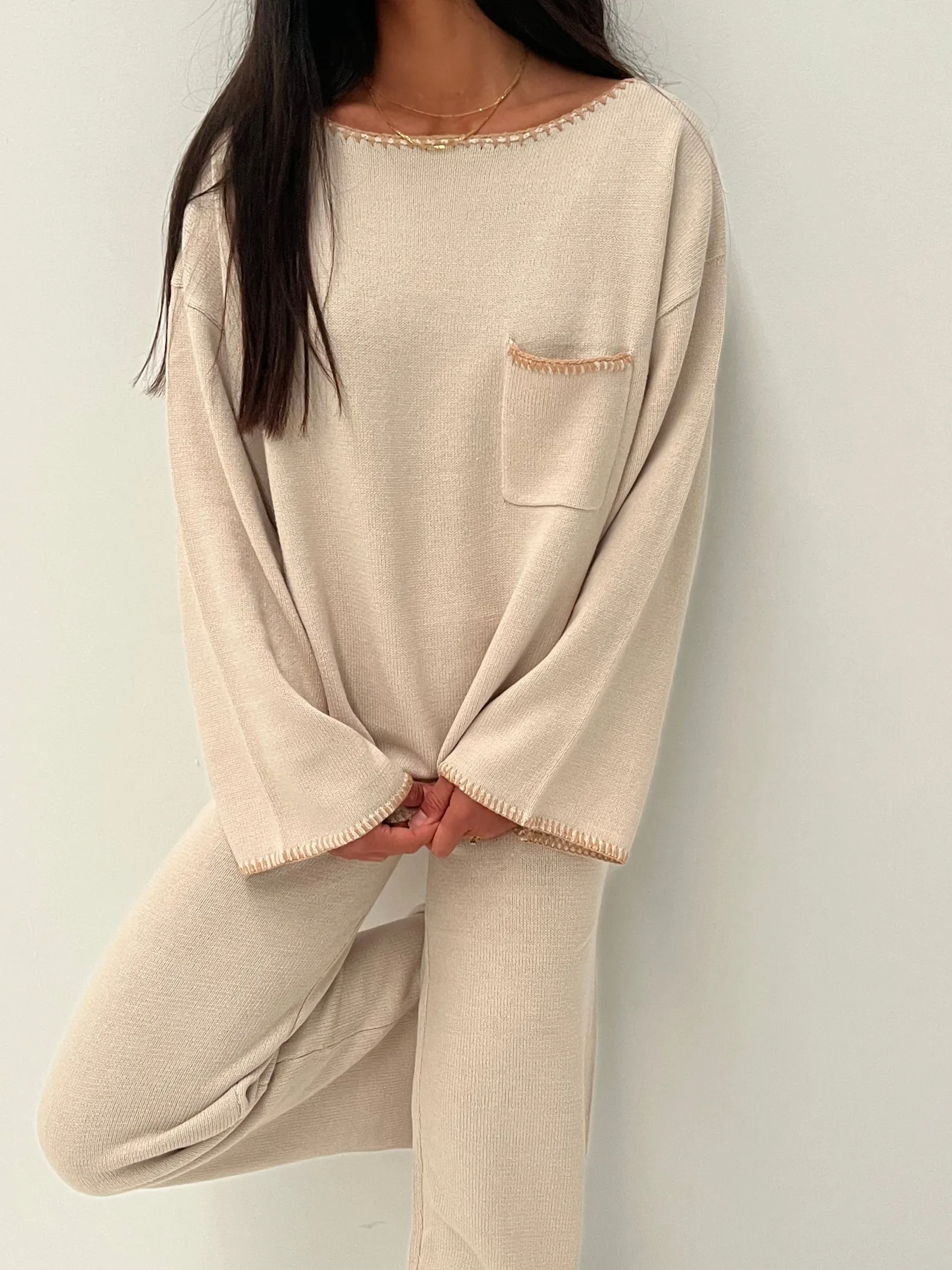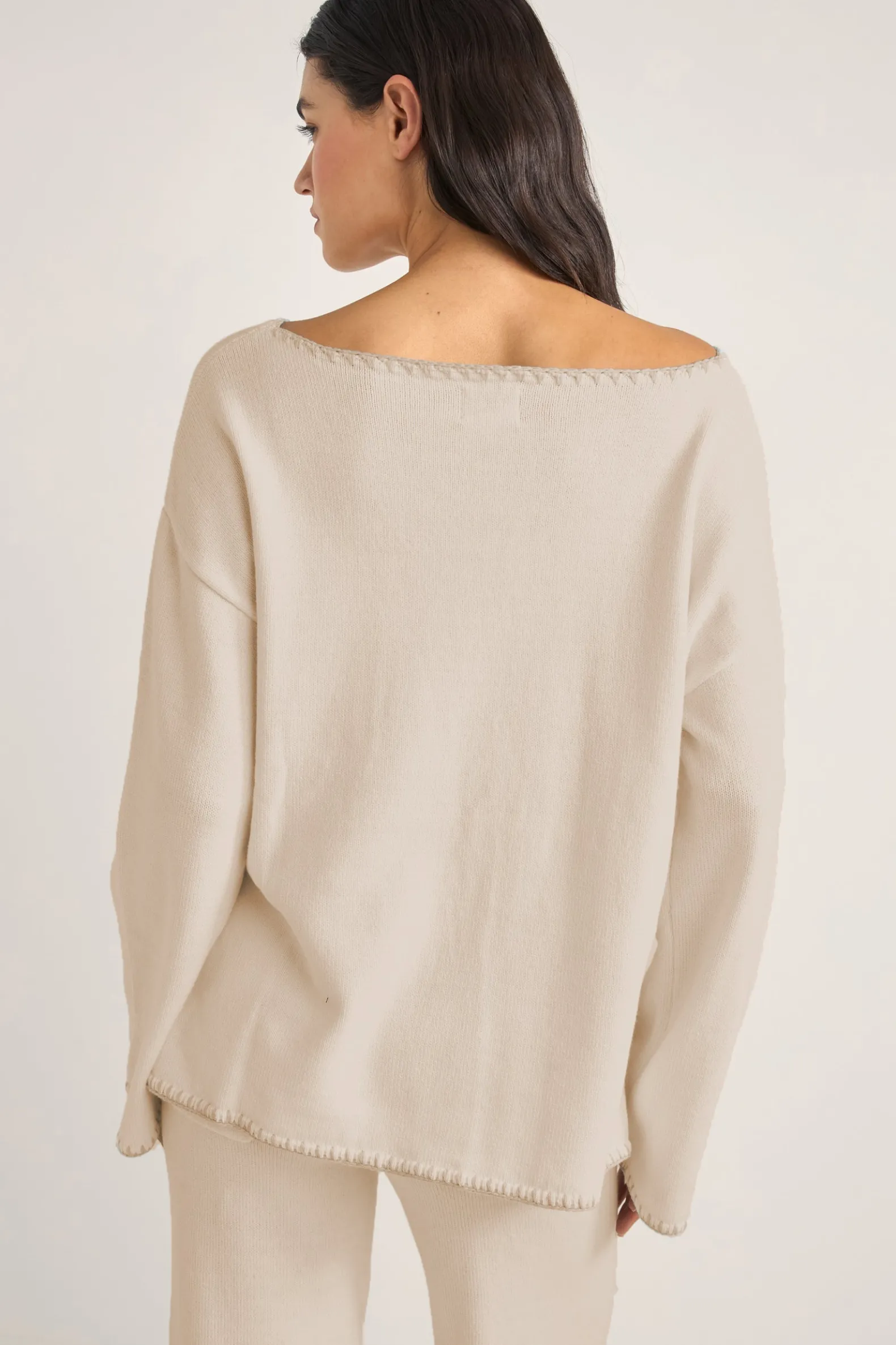 The Bondi Knit Jumper in Natural offers an oversized fit with a chest pocket and side slits for a relaxed yet stylish look. Ideal for layering on cooler coastal evenings.