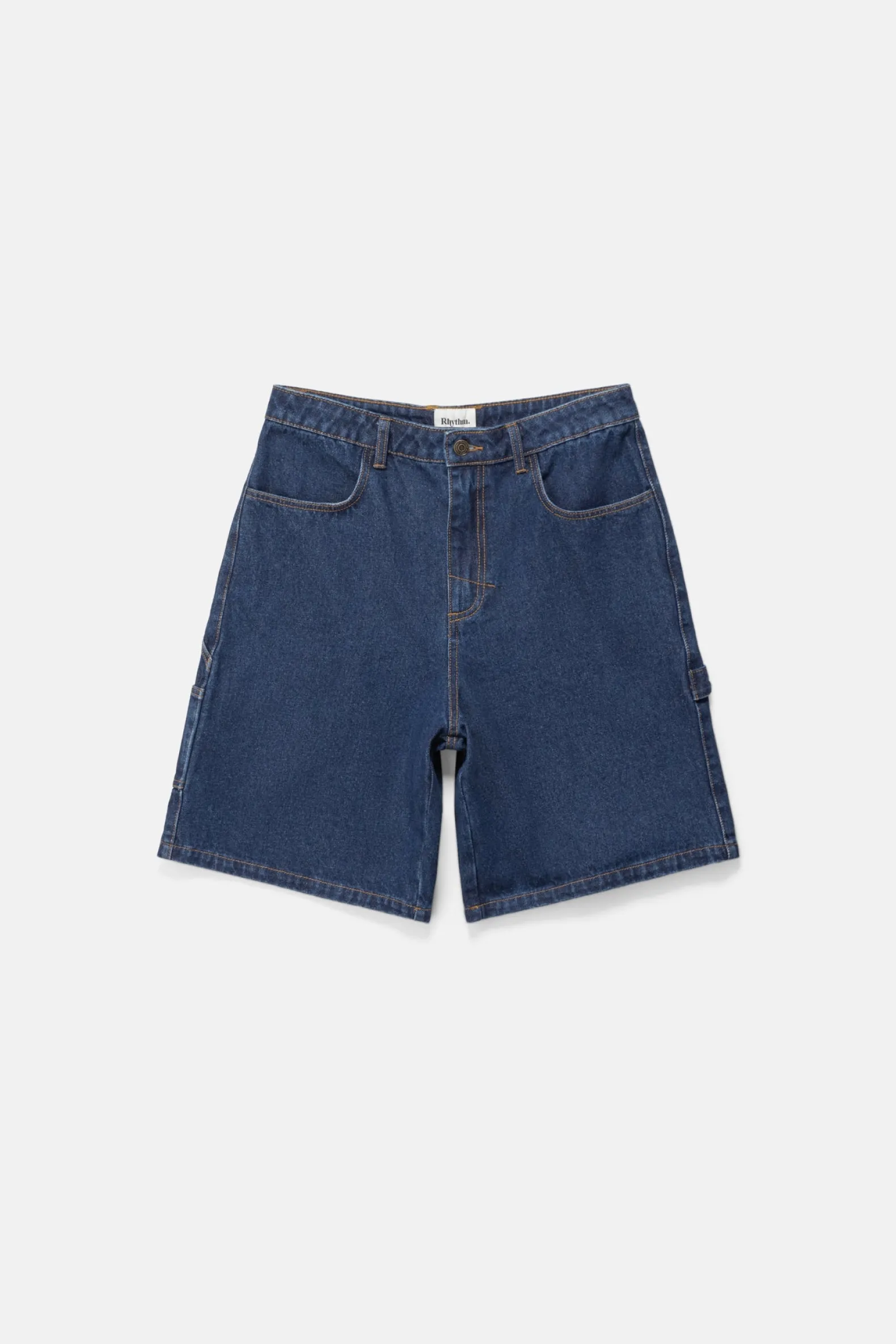 The Breakers Denim Short in Navy showcases a mix-and-match stripe design in contrasting hues of white and brown. With a relaxed fit, these shorts blend classic and contemporary effortlessly.