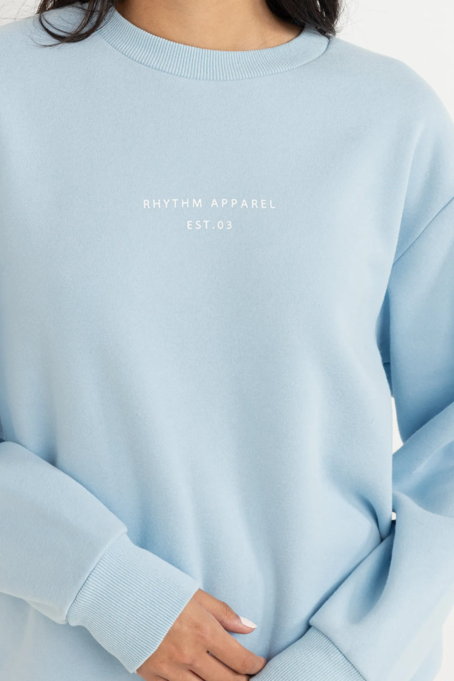 Laidback and carefree, the Classic Brand Fleece in Blue is made of a super soft and cosy brushed fleece in an oversized relaxed fit, perfect for catching the sunset amongst the fresh sea breeze.