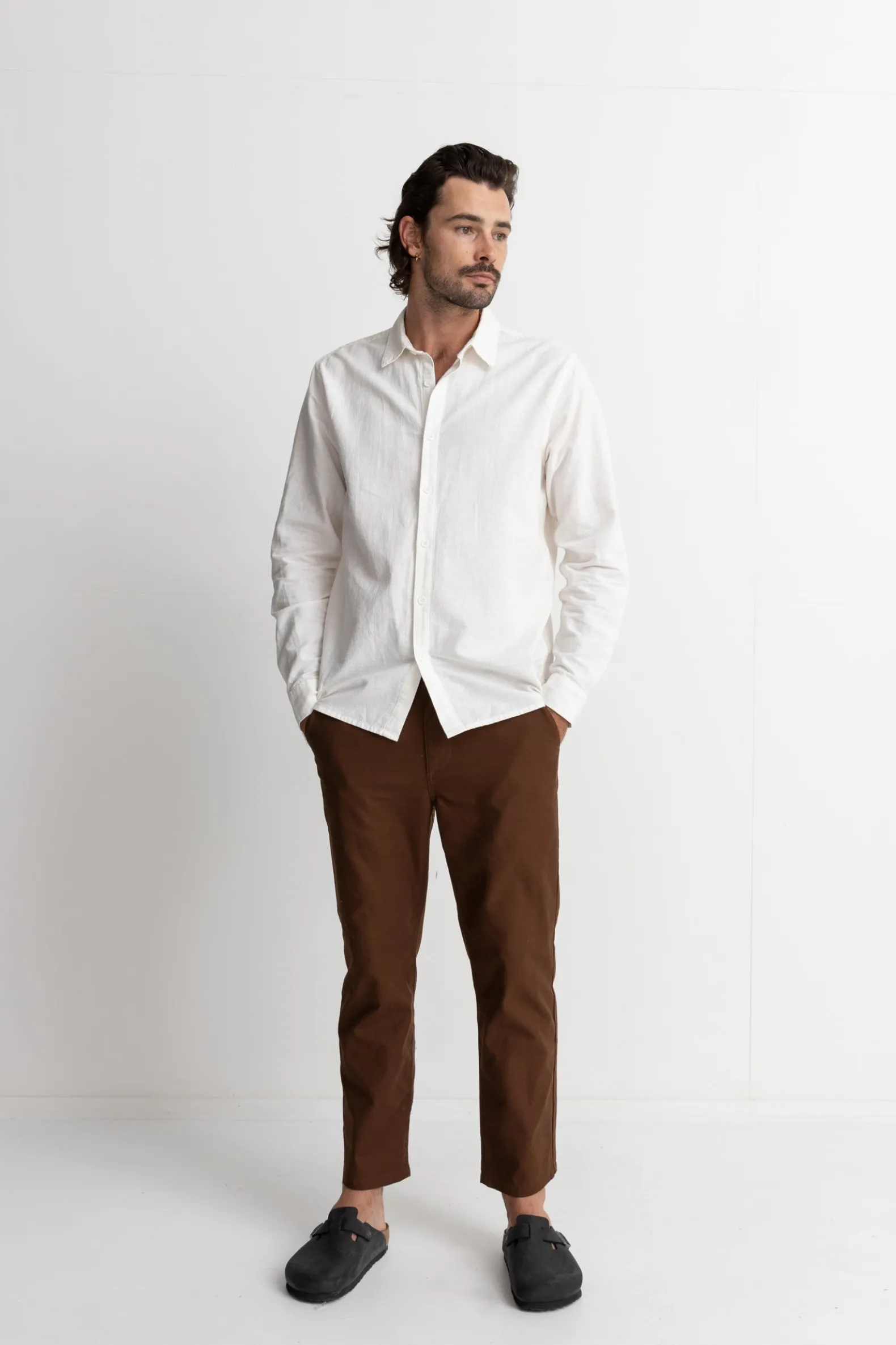 Inspired by the classic military fatigue pant look, the Classic Fatigue Pant in heavy-duty washed cotton twill features side and dual back welt pockets with a fixed waist and straight leg with a slight taper.