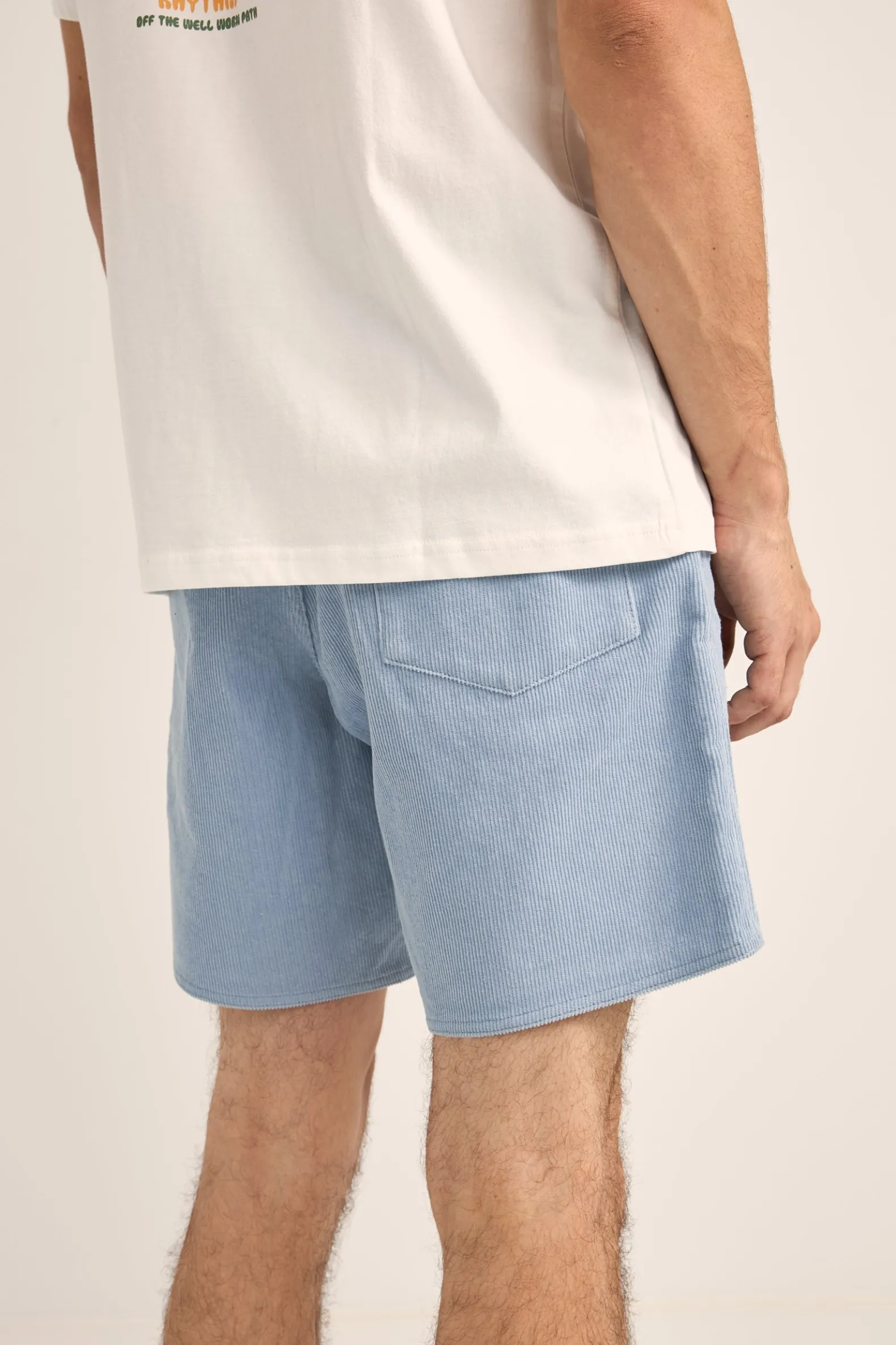 Relax in the Cord Jam Shorts, designed in a sky hue of 11-wale cotton corduroy. These shorts are equipped with an elastic waistband, poly drawstring, and side seam hand pockets. They’re pre-washed for a vintage hand feel, offering a perfect blend of comfort and casual style with a shorter 17-inch out seam.