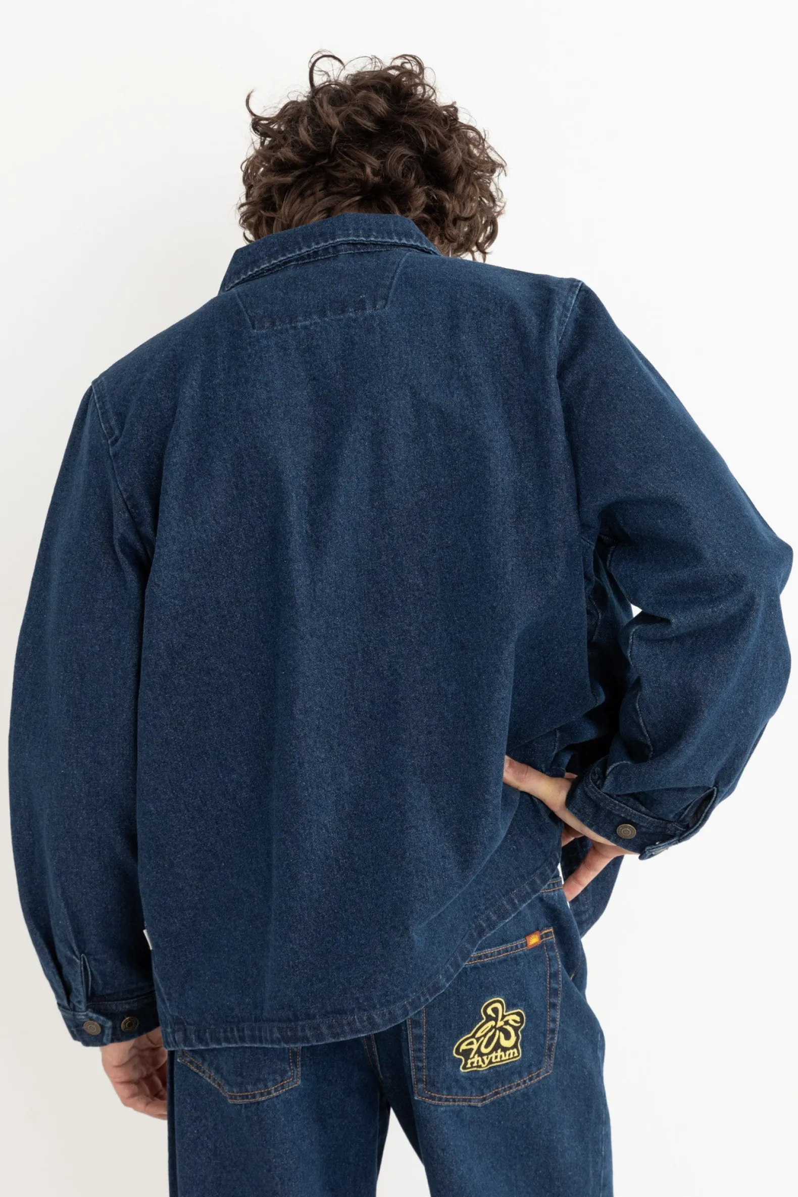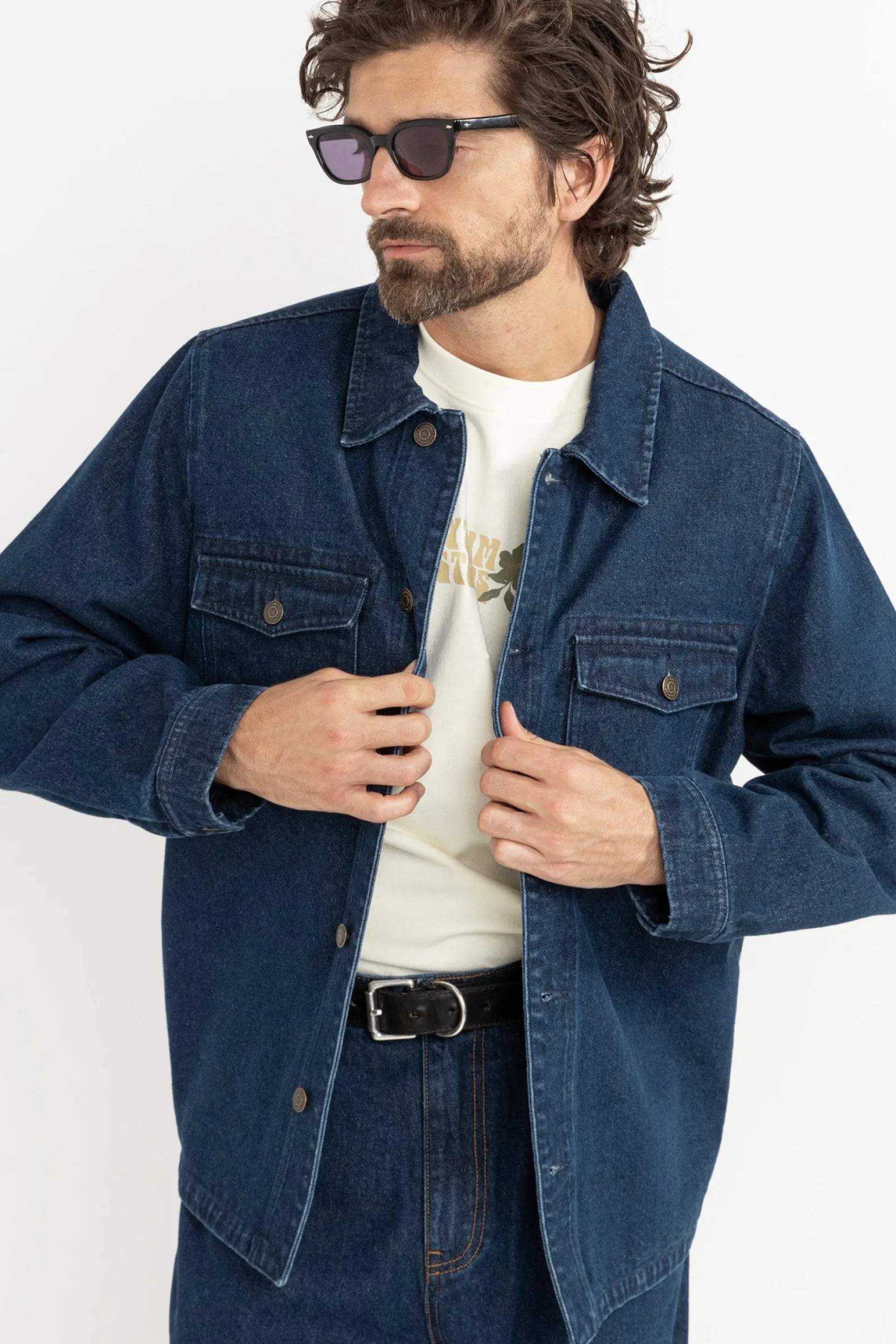 The Eddy Jacket in Navy offers elevated utility with a coastal edge. Constructed from durable cotton, it features two front flap pockets with button closures and cuffed sleeves with adjustable button cinches.