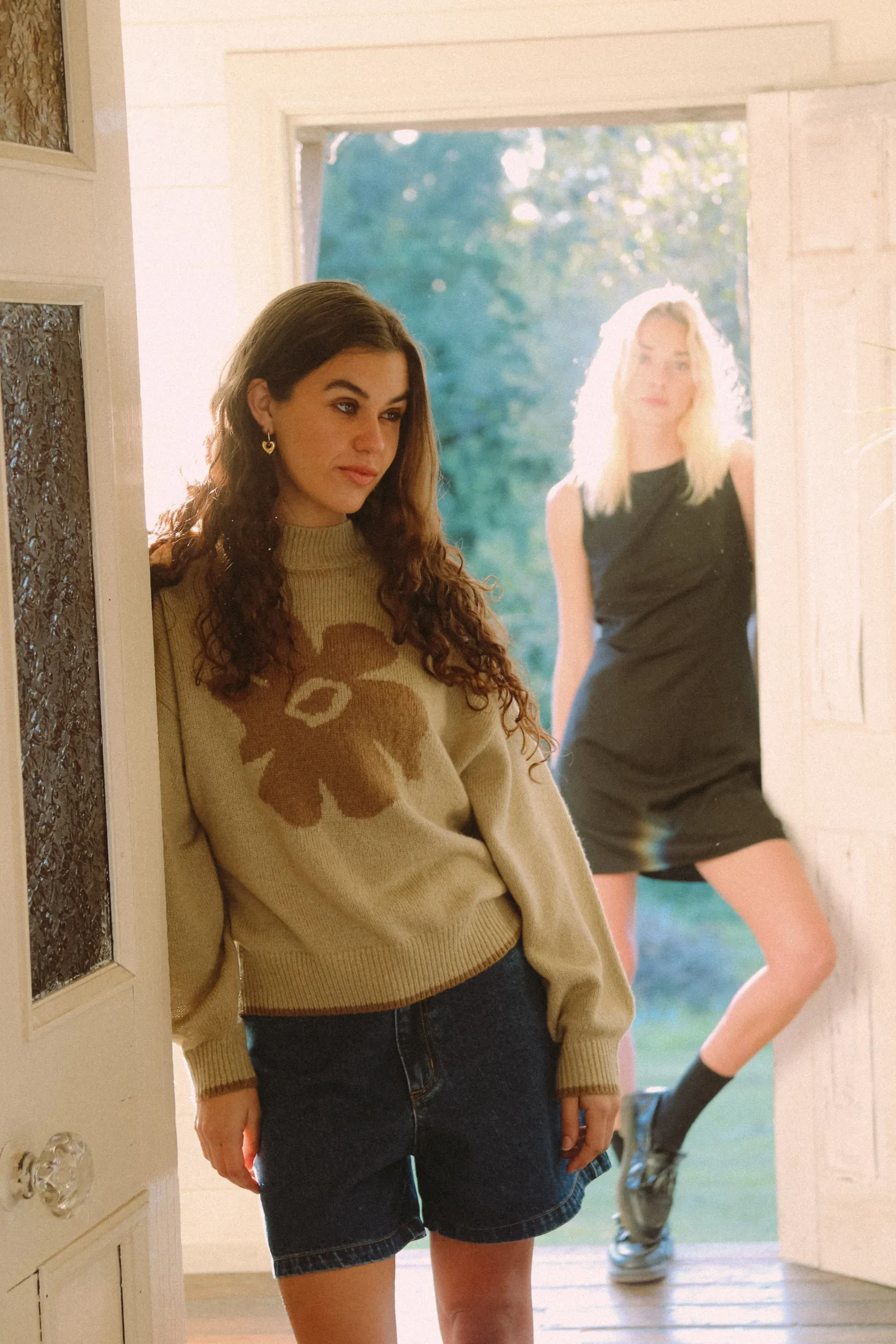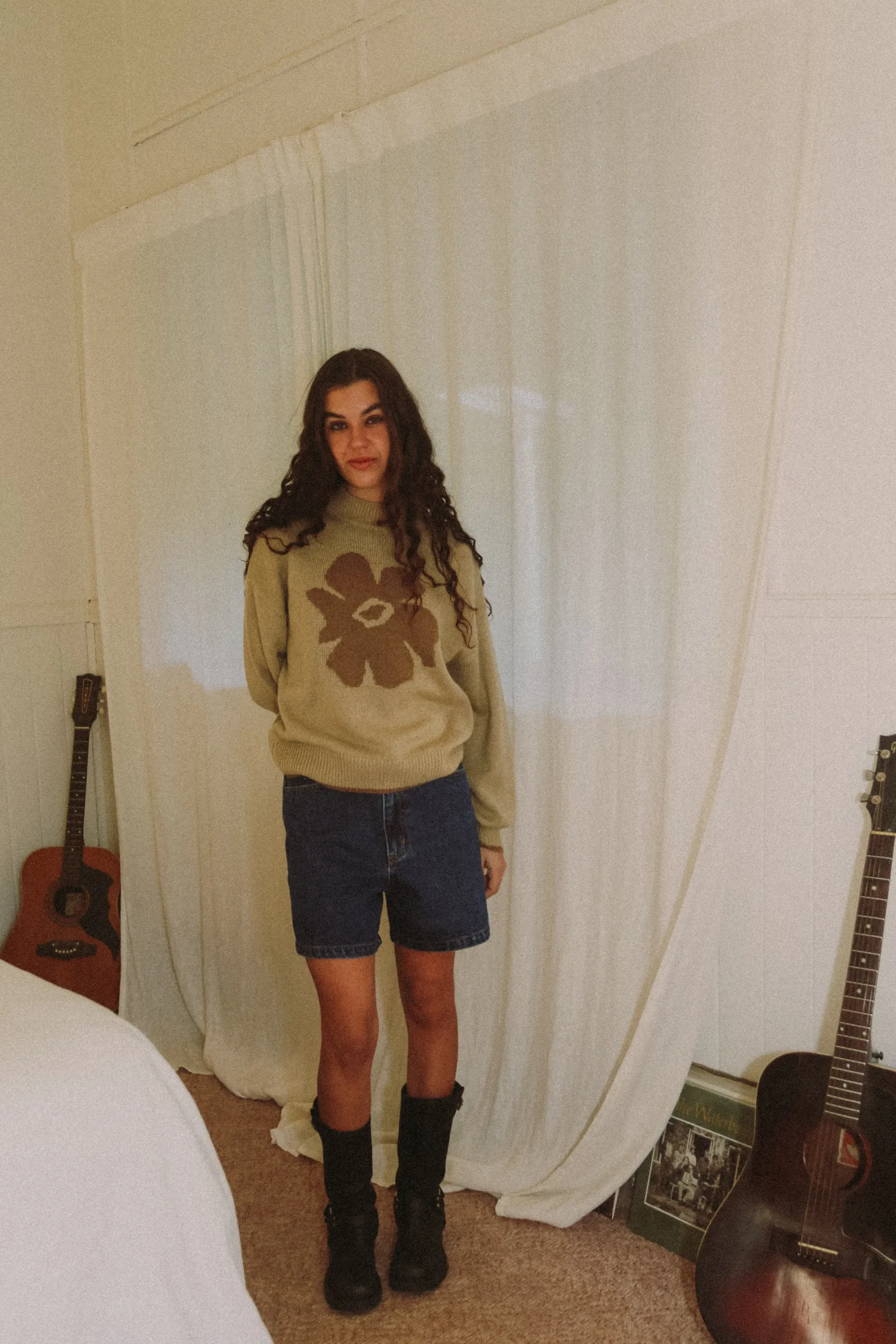 The Juliet Floral Jumper in Beige features a relaxed fit with a cropped length. Perfect for adding a touch of floral charm to your coastal wardrobe.