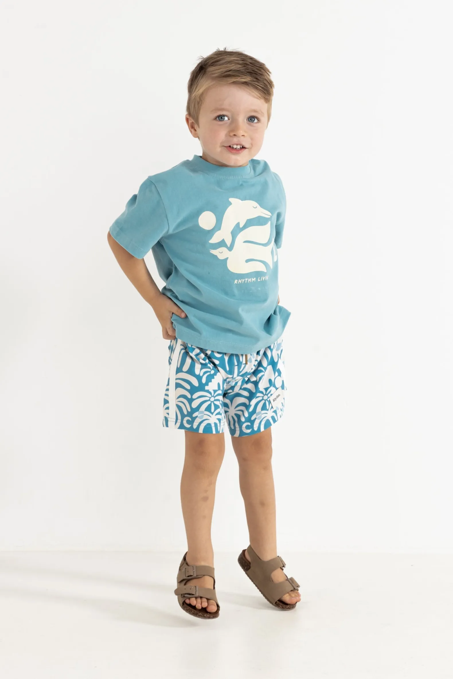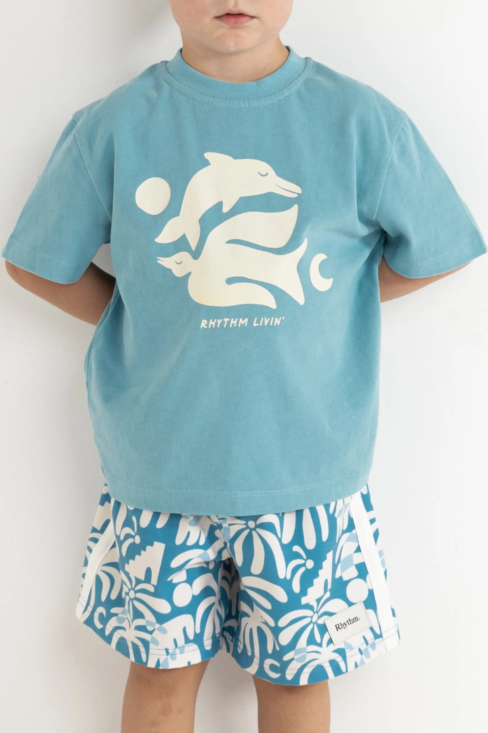 This relaxed-fit tee in a bold blue shade offers soft cotton jersey comfort with a touch of whimsy through its playful graphic print. Perfect for adventurous little ones who love to stand out.