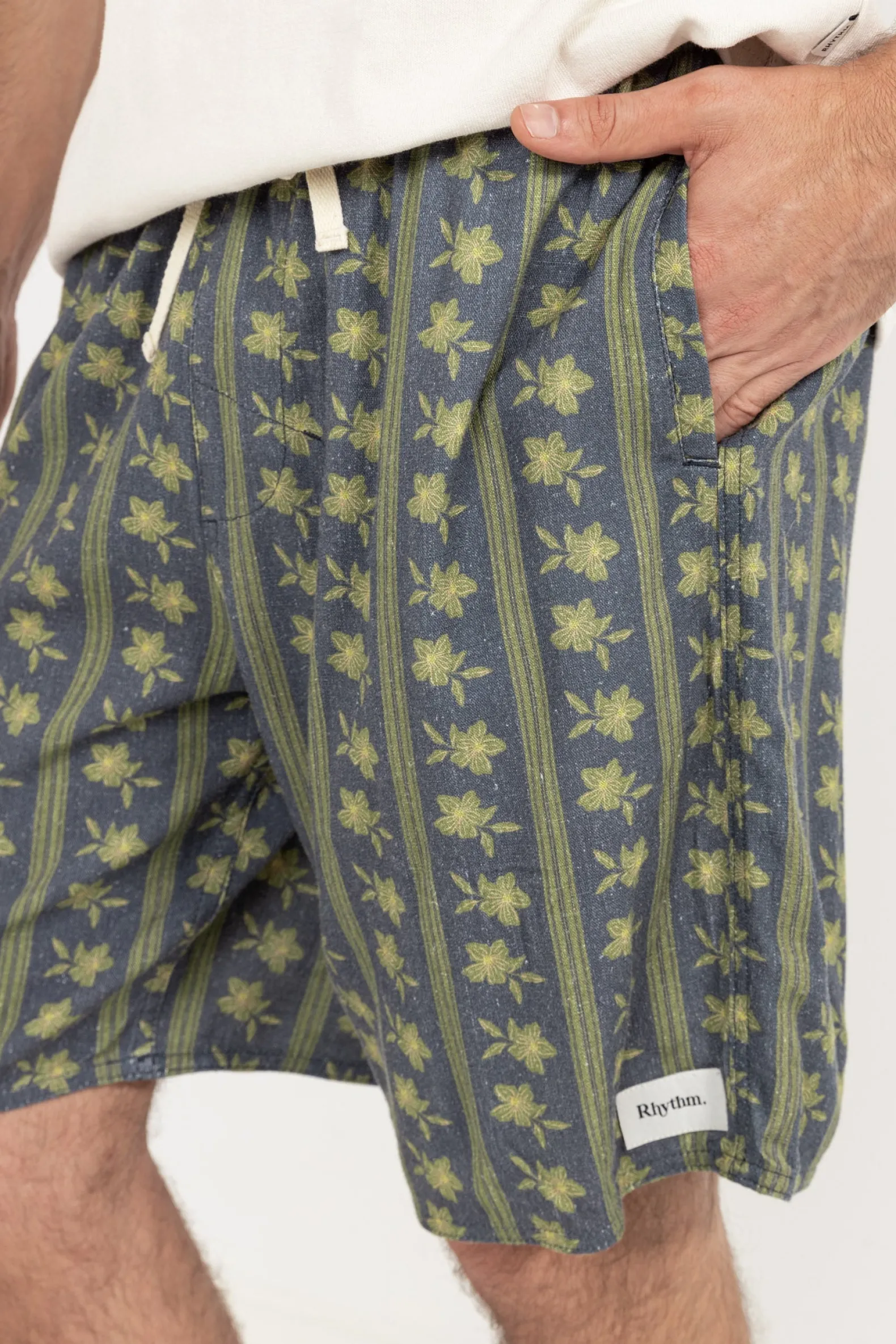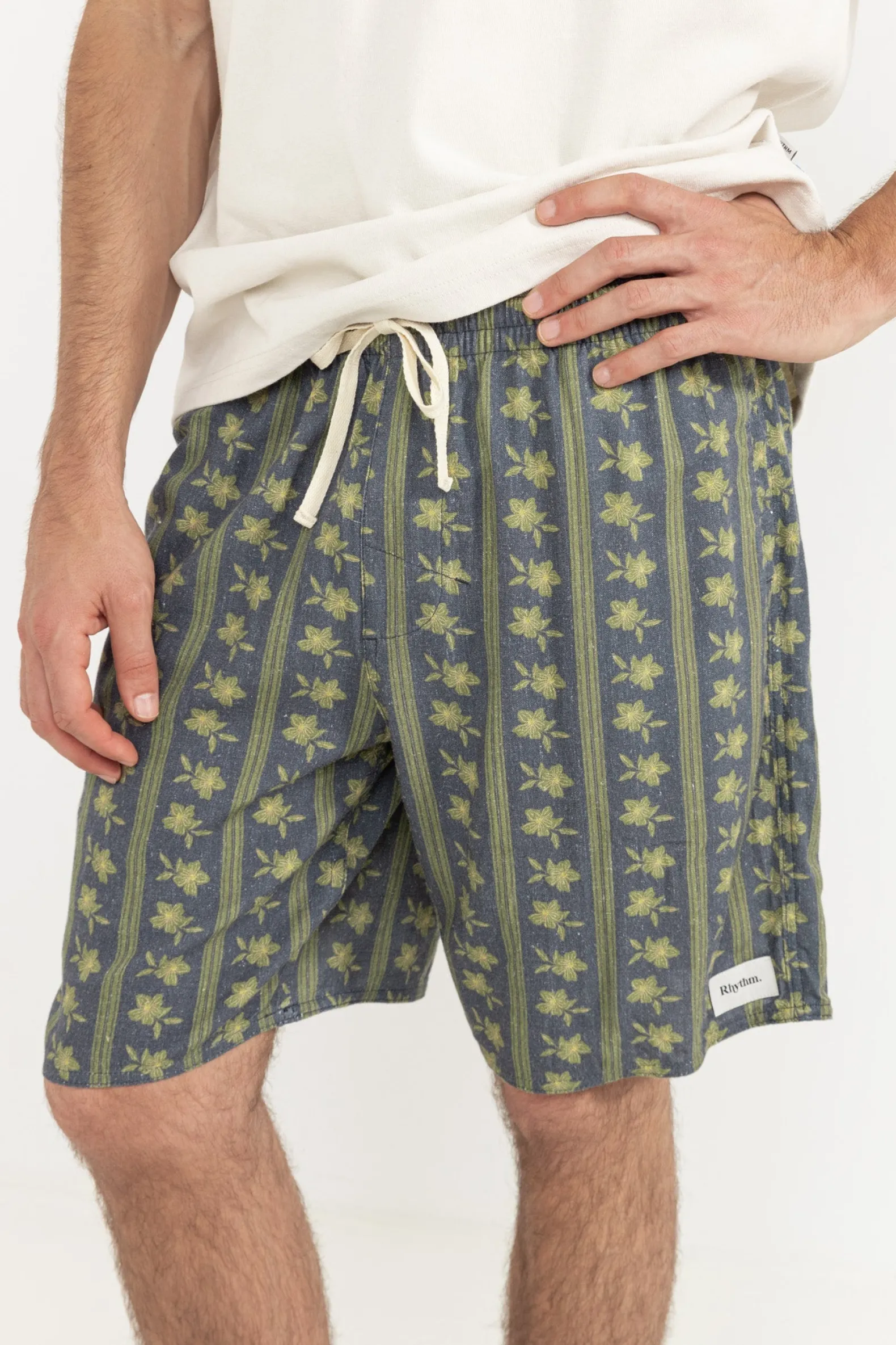 Make a statement in the Overlap Jam in Stone Blue. Featuring an all-over print, DTM drawstring, and signature branding, these jams are crafted for effortless style by the shore.