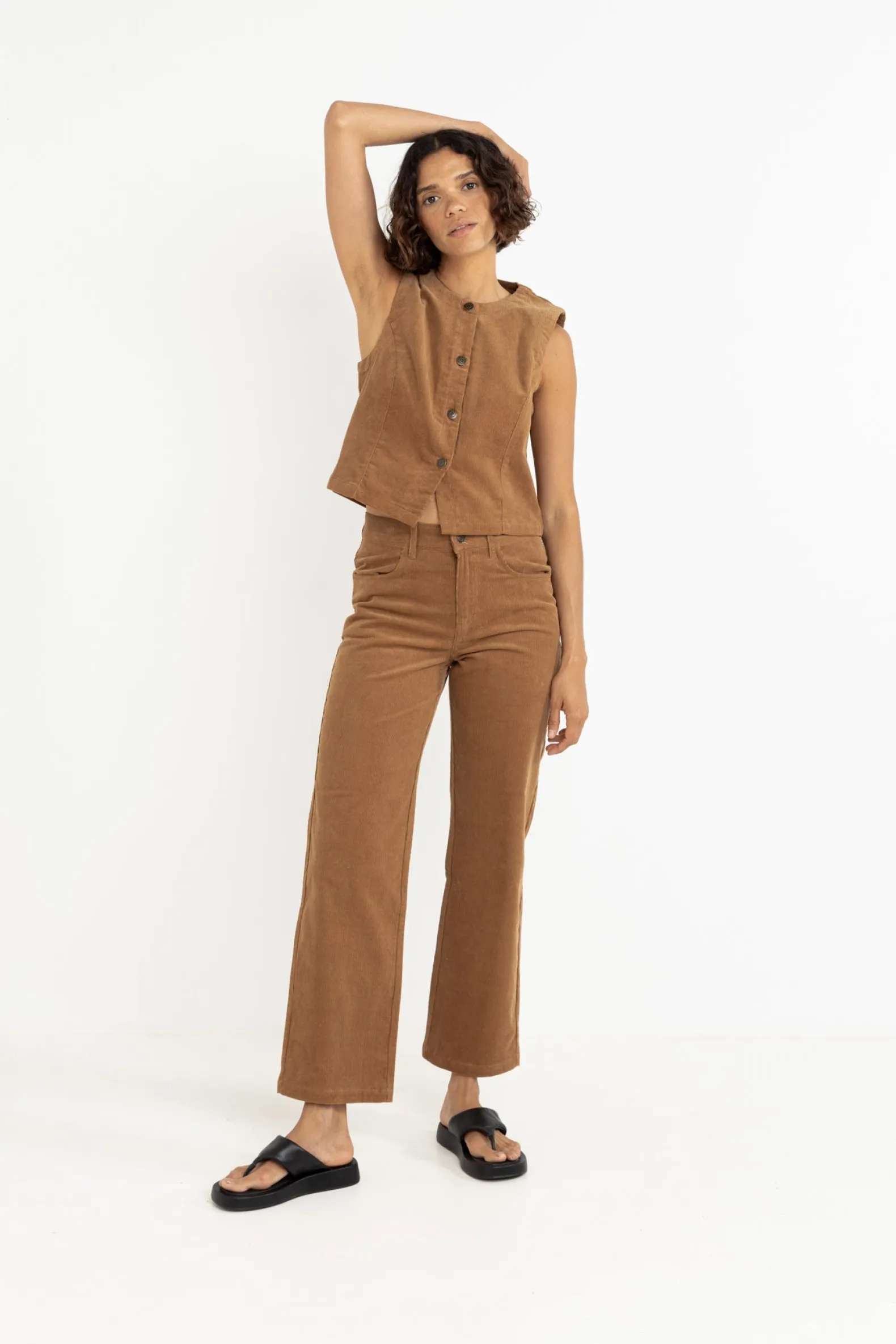 Designed for comfort and style, the Ranch High Waist Corduroy Pant in Cedar features a flattering high-rise fit and straight-leg silhouette. Perfect for transitioning from casual afternoons to evening outings.