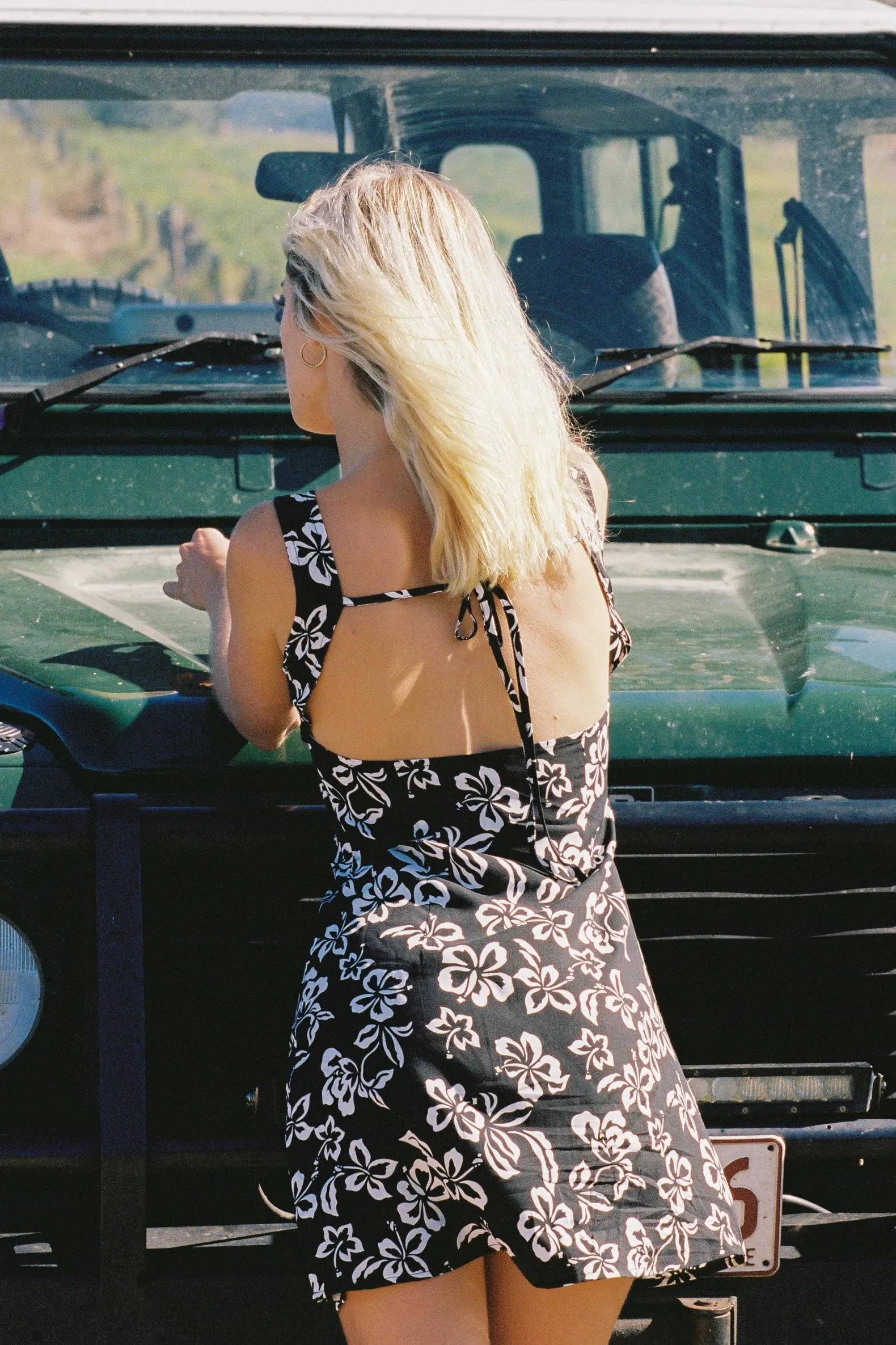 The Roselle Tie Back Mini Dress in Roselle Floral combines a boat neck and tie back closure with a vibrant tropical print. Ideal for bringing a splash of summer to your wardrobe.