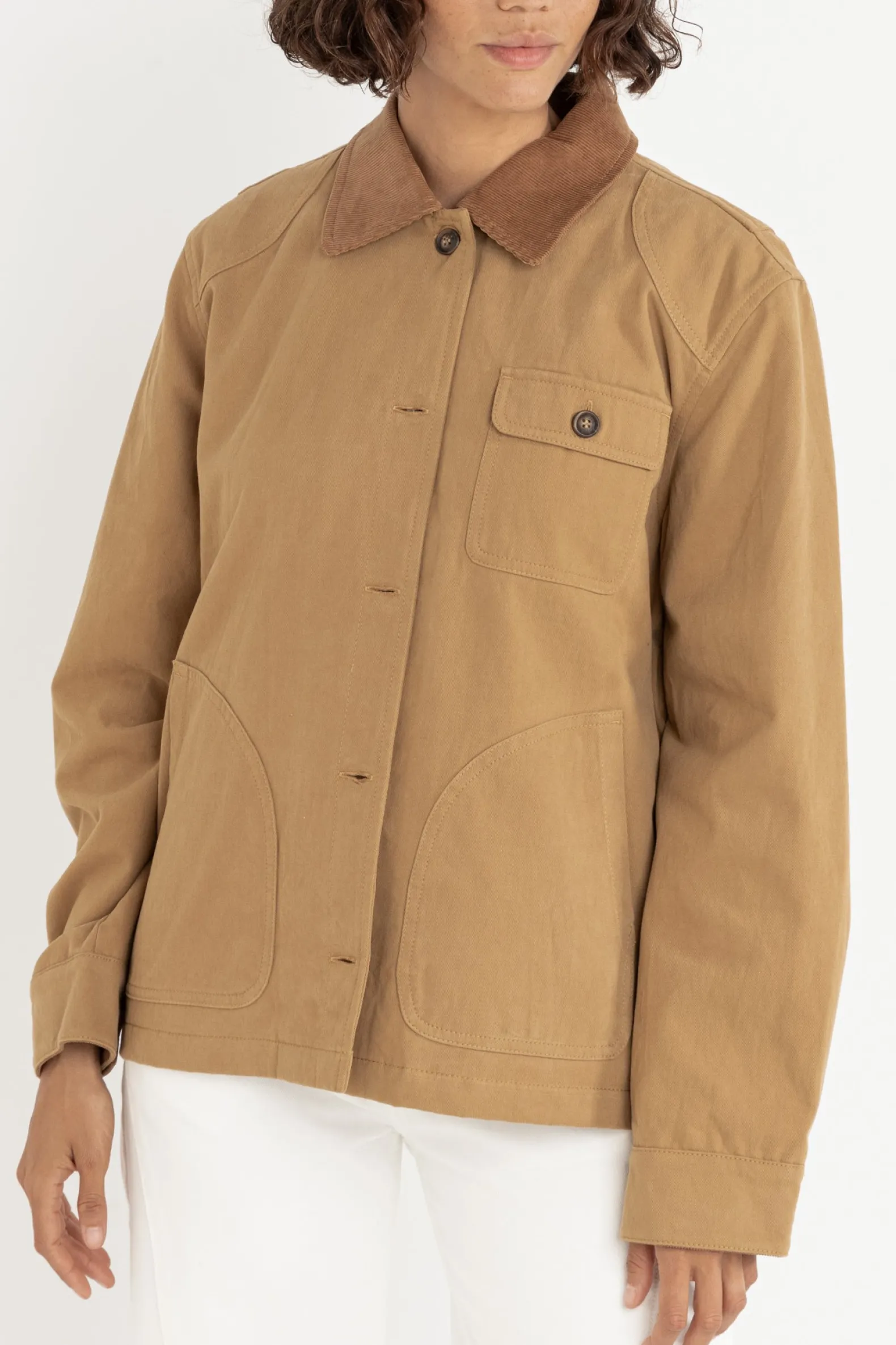 Rooted in classic design, the Rowan Barn Jacket in Oak offers a relaxed fit with thoughtful details like gingham lining and horn buttons. Its earthy tone is perfect for layering during breezy coastal adventures.
