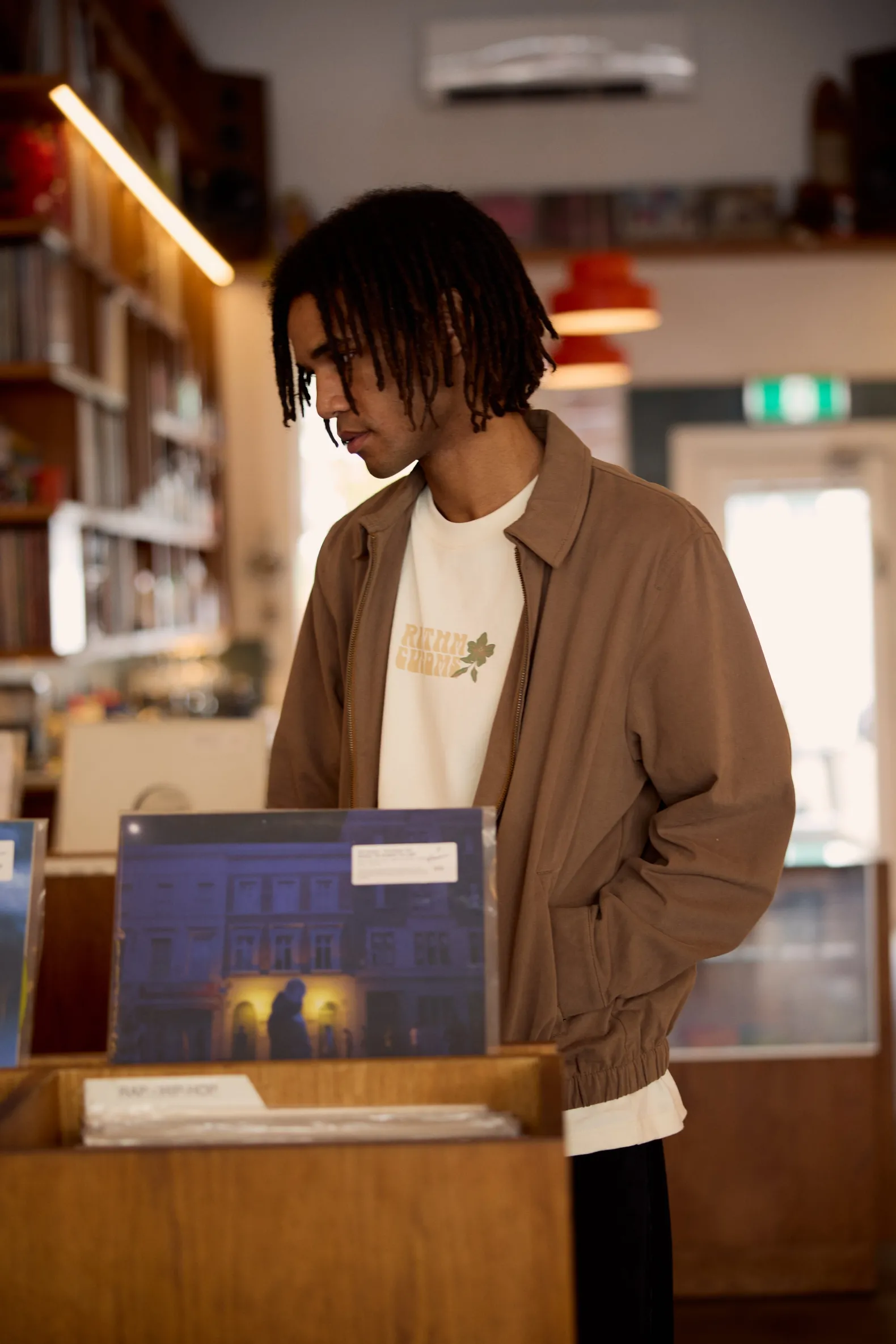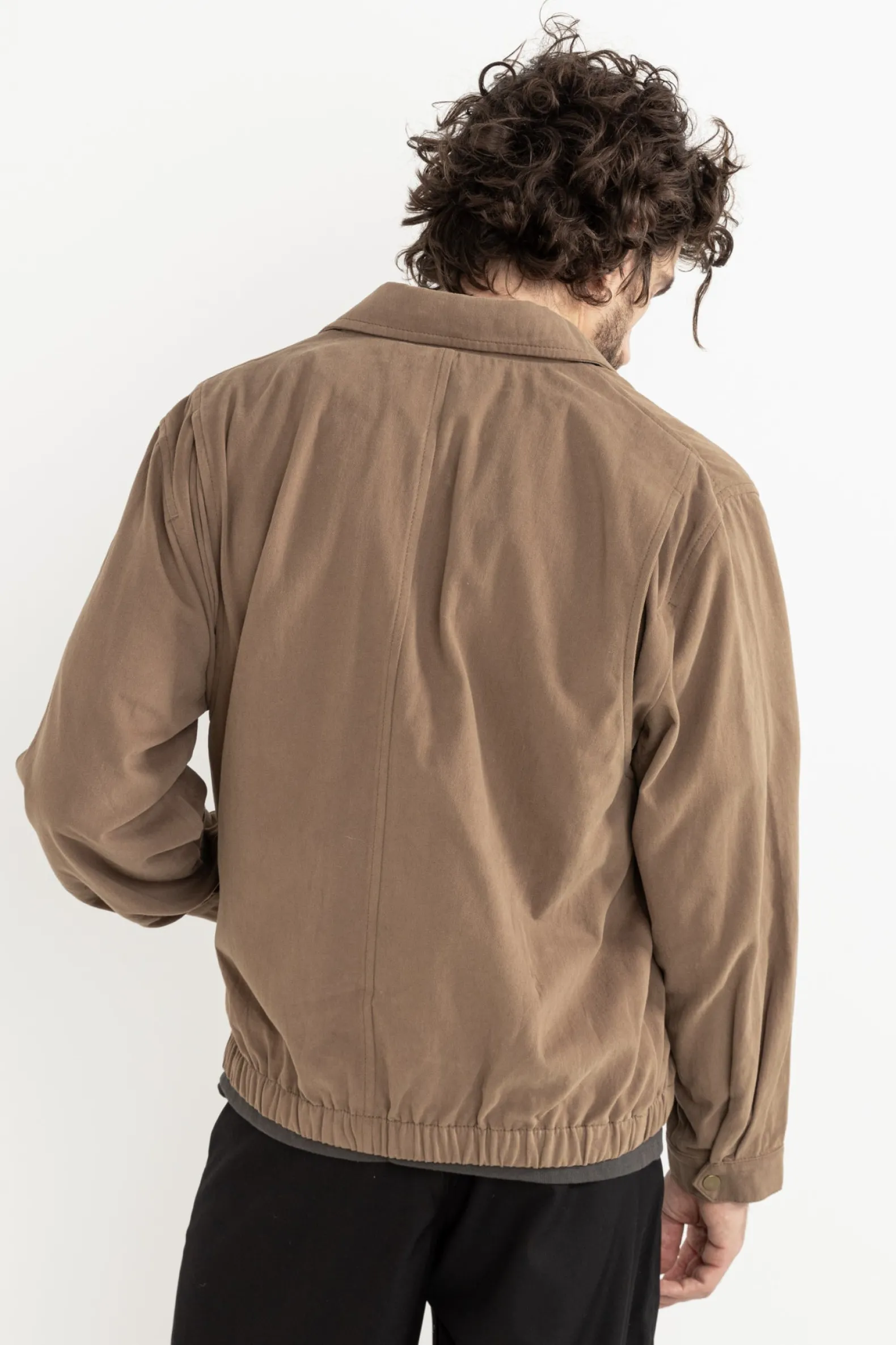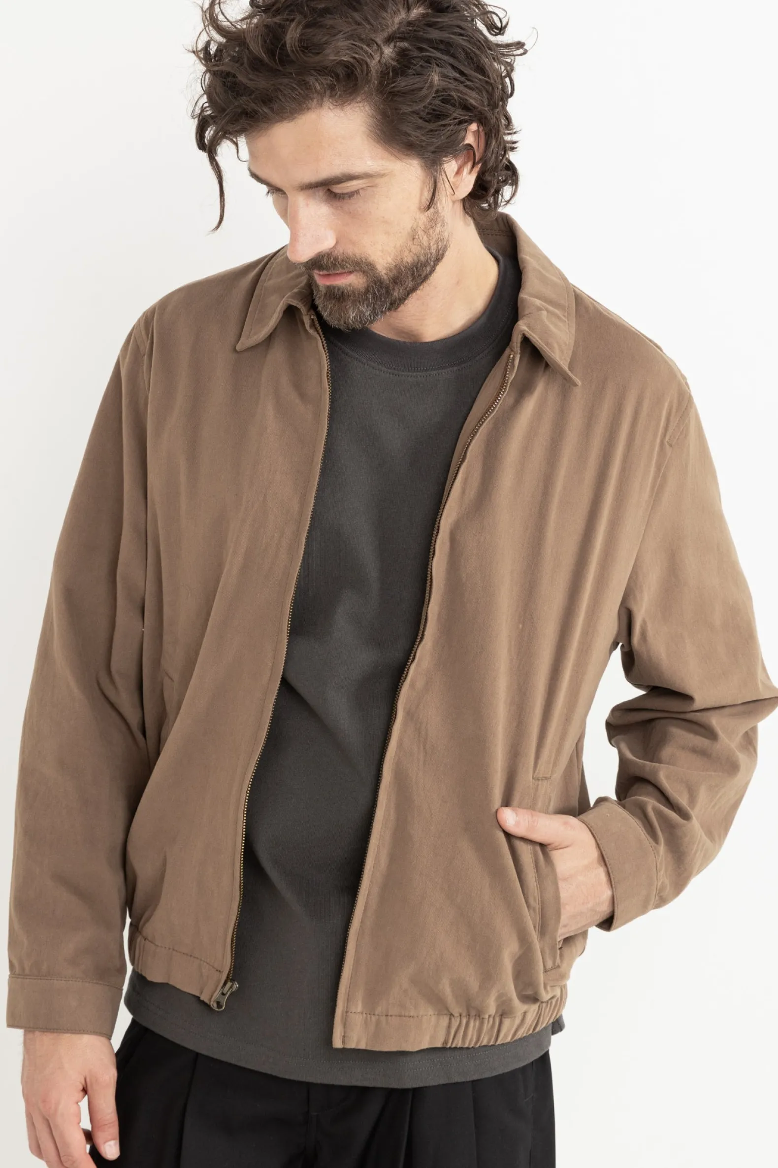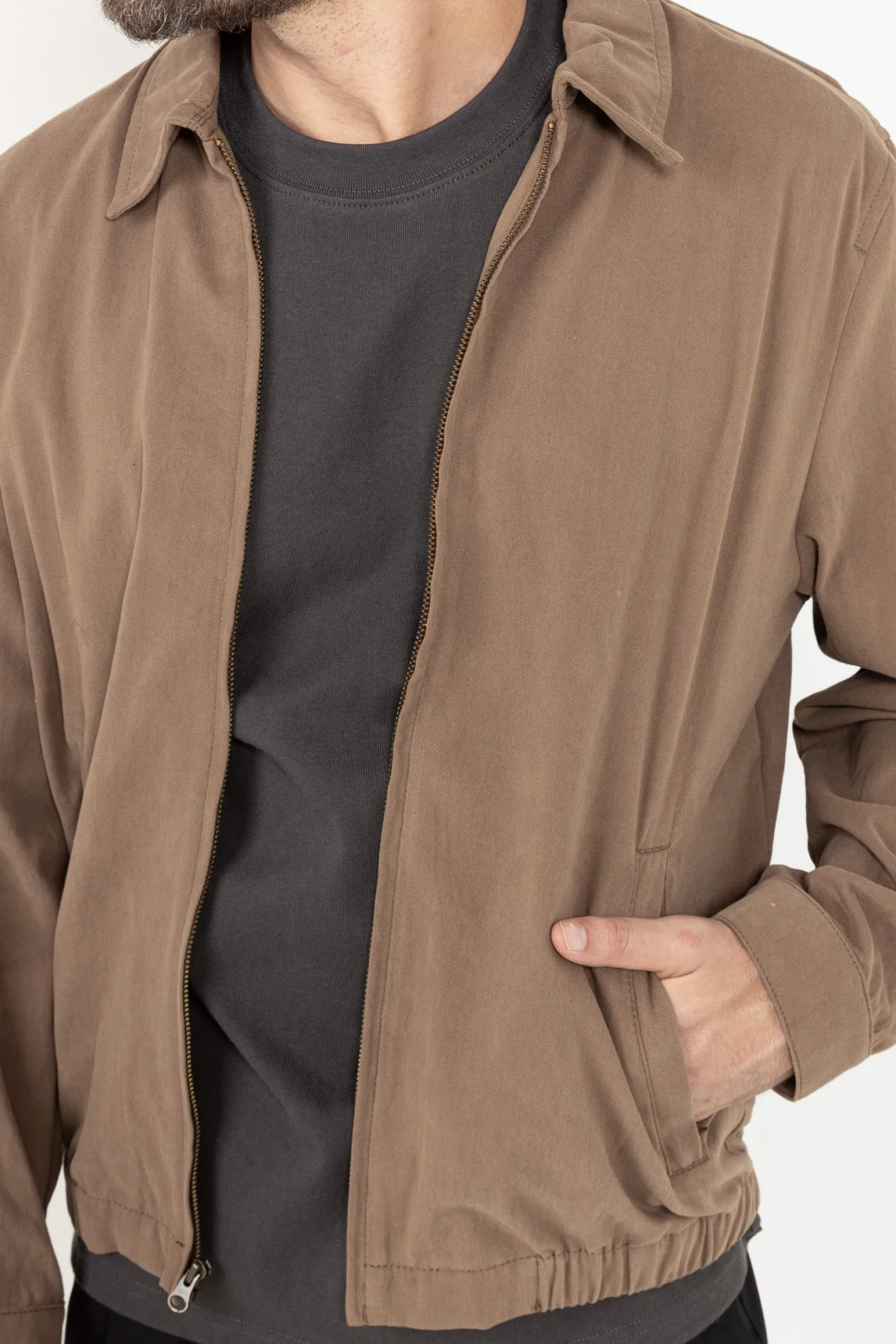 The Twill Bomber Jacket in Brown is a modern layering essential. Its half-elasticated hem and gusset back panels add ease of movement, while cuffed sleeves enhance its tailored fit.